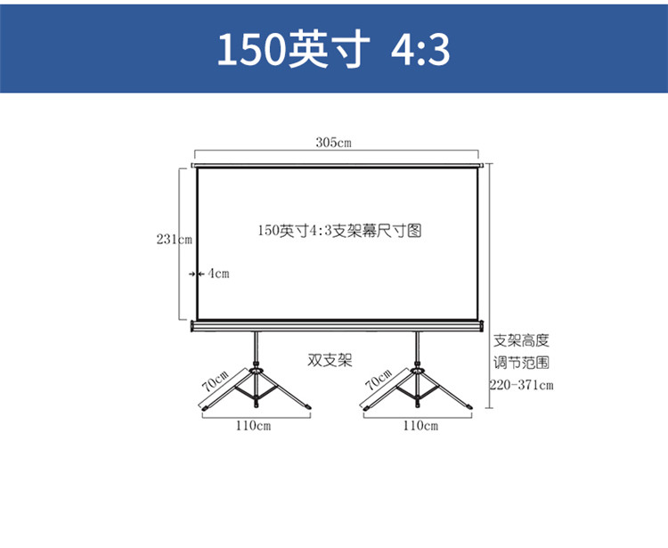 商品标题:红叶150英寸支架幕投影幕布4:3(72型)(付)