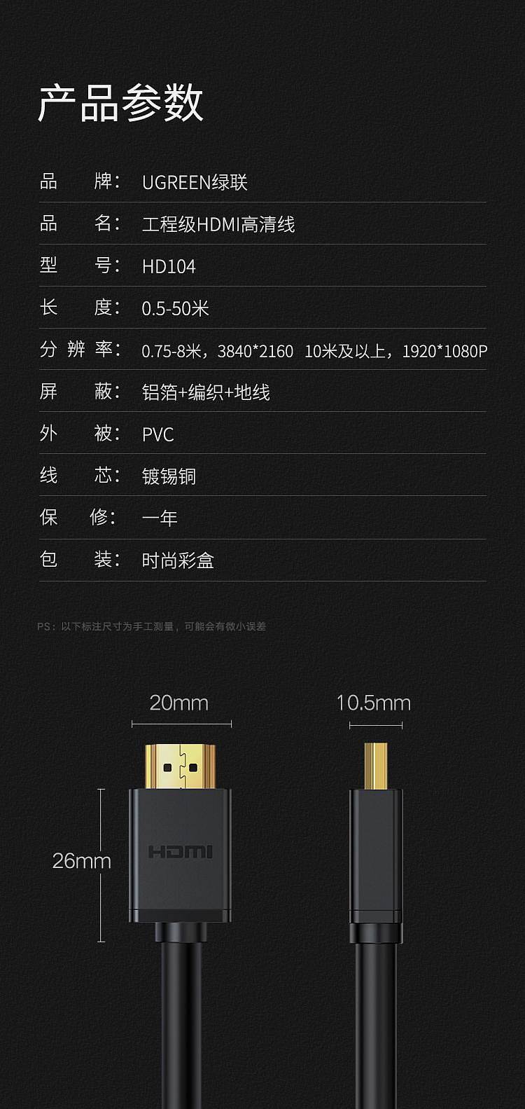 商品标题:绿联10111数字高清HDMI线15米黑色(根)