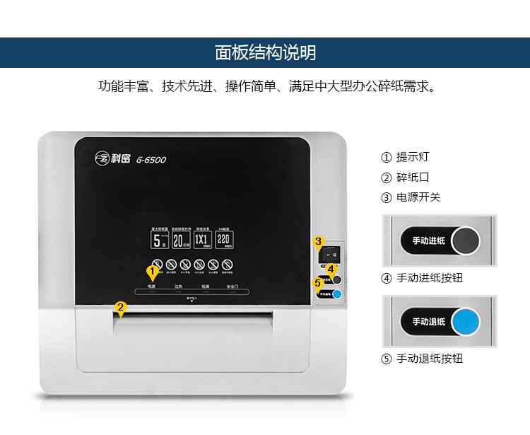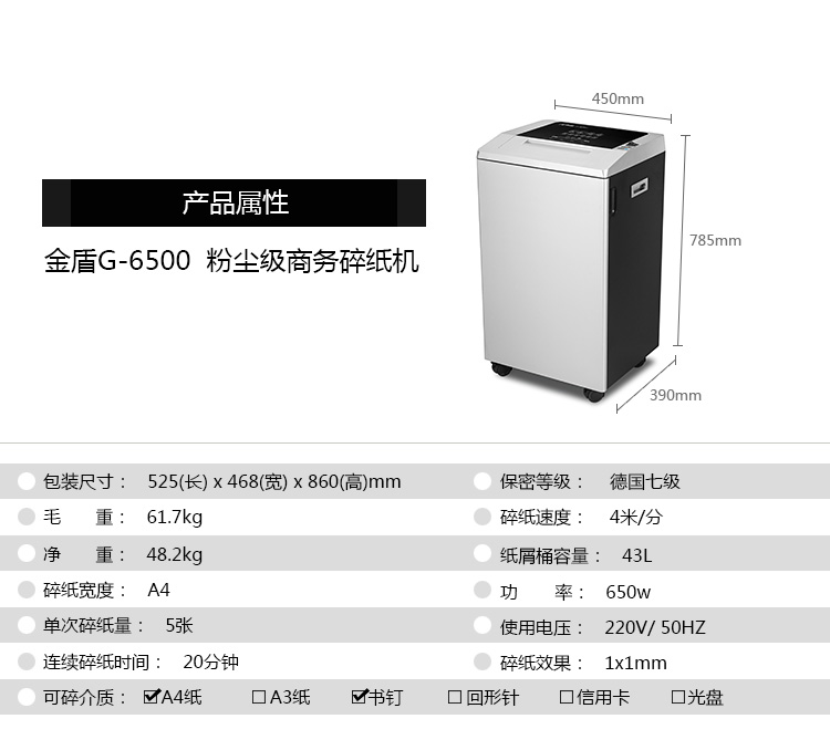 商品标题:科密碎纸机G-6500银黑(单位:台)