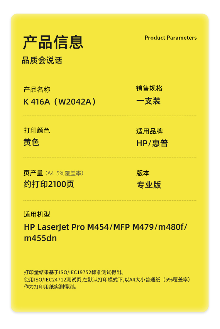 科思特(KST)兼容K 416A(W2042A)硒鼓(鼓粉一体)黄色单支装(适用HP LaserJet Pro M454/MFP M479/m480f/m455dn)打印页数:2100页(支)