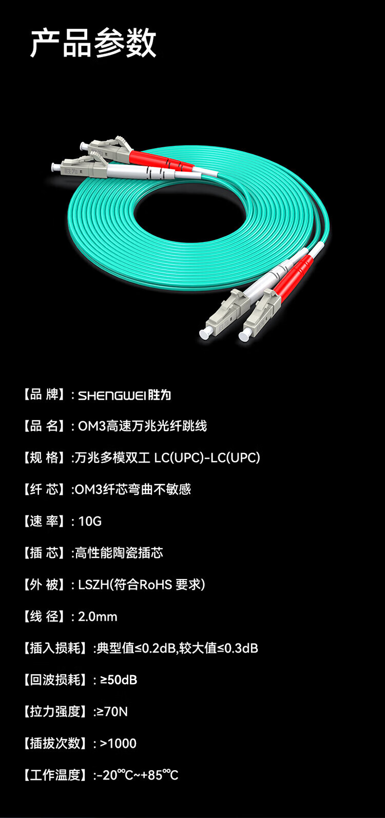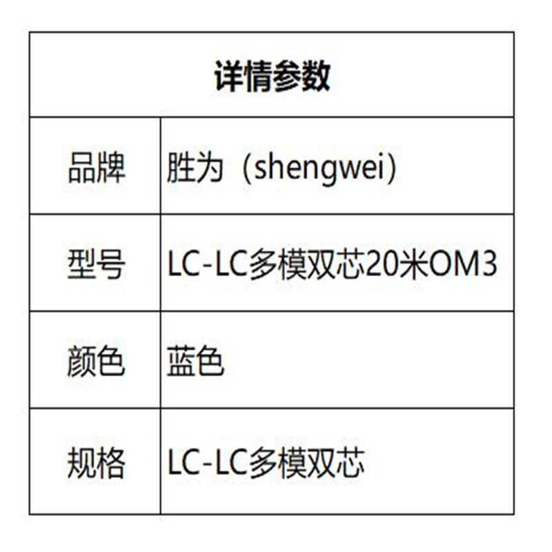 商品标题:胜为 LC-LC多模双芯20米OM3 光纤跳线20米(对)