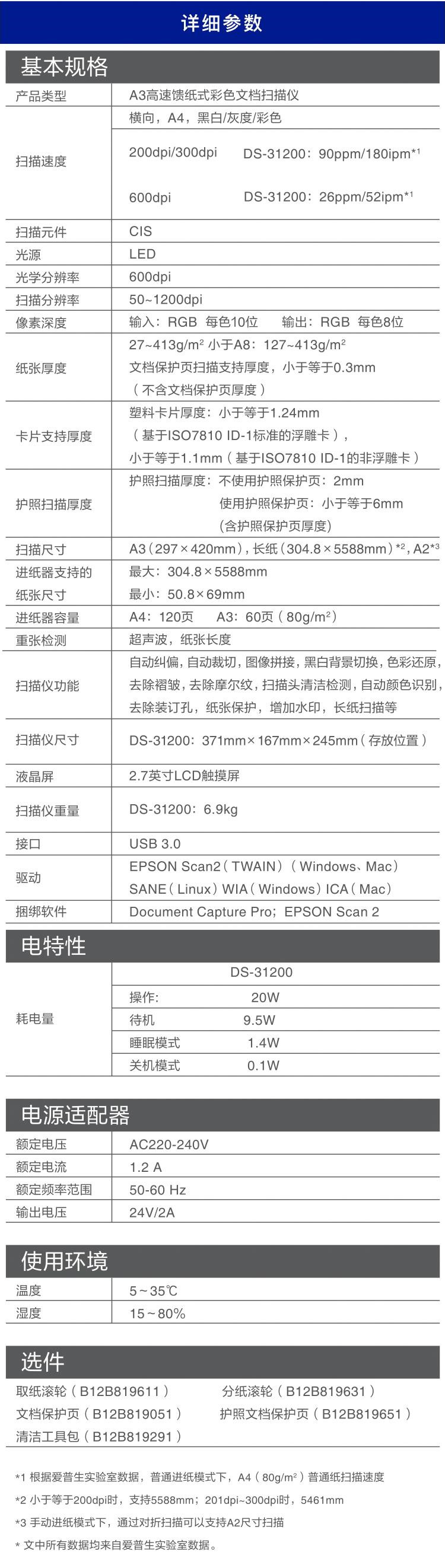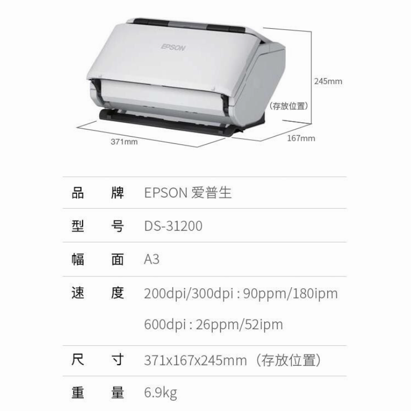 商品标题:爱普生(Epson) DS-31200 A3大幅面 馈纸式扫描仪 (单位:台)