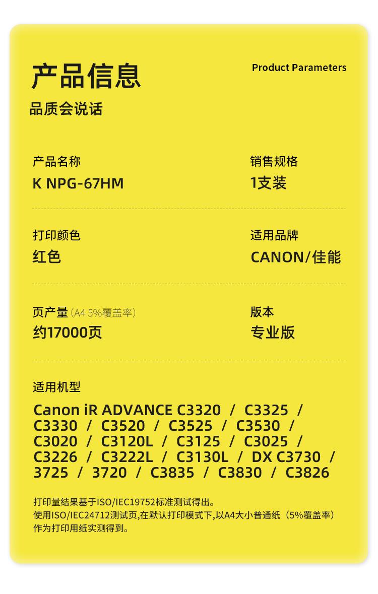 适用机型:佳能iR ADVANCE C3320/3325/3330/3520/3525/3530/C-EXV49/GPR-53/C3020