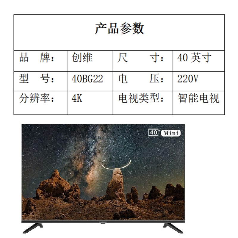 商品标题:创维(Skyworth)40BG22 40英寸 平板电视(台)