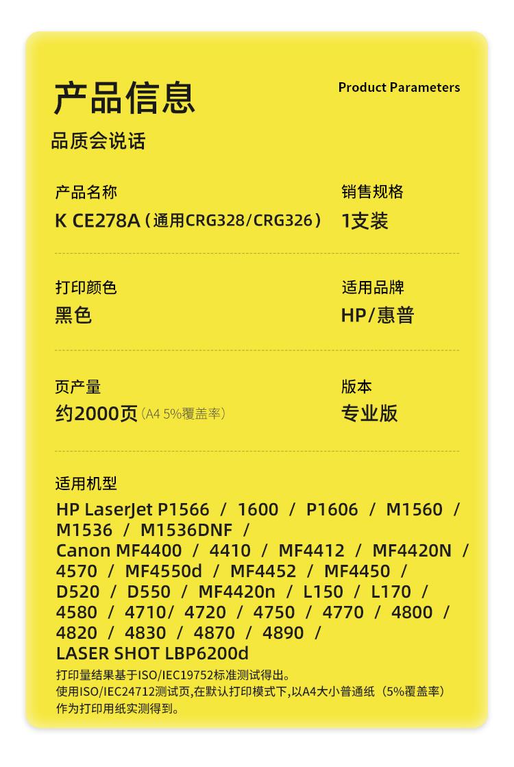 科思特 兼容K CE278A硒鼓(鼓粉一体)黑色单支装(适用HP LaserJet P1566/1600/P1606/M1560/M1536/M1536DNF等)打印页数:2000页(支)