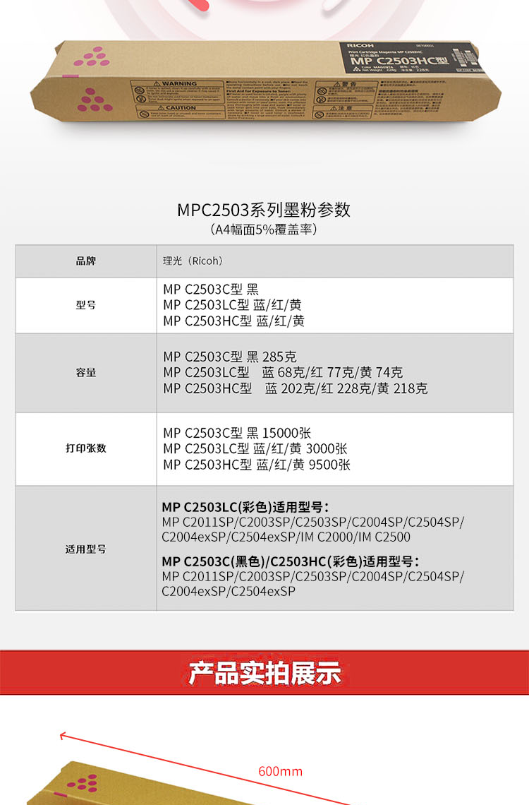 商品标题:理光MP-C2503HC原装碳粉红(支)