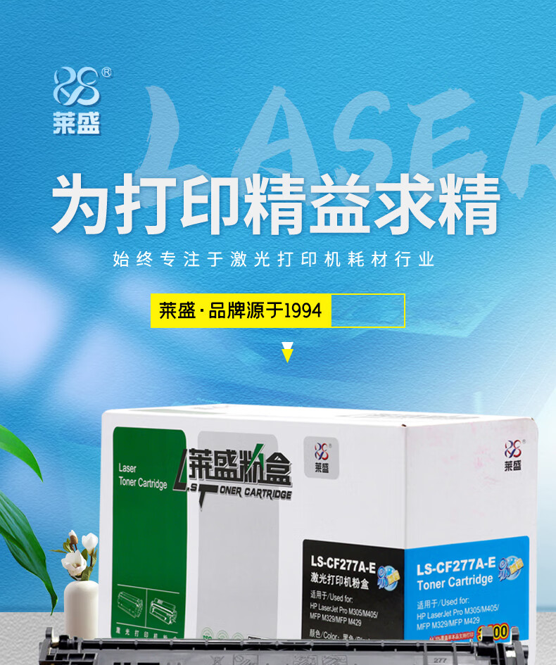 莱盛 LS-CF277A-E 硒鼓 (鼓粉一体)黑色单支装 适用于:HP LaserJet Pro M305/M405/M406/M407dn/M430/M431f/MFP M329/MFP M429 打印页数:3100页 (单位:支)