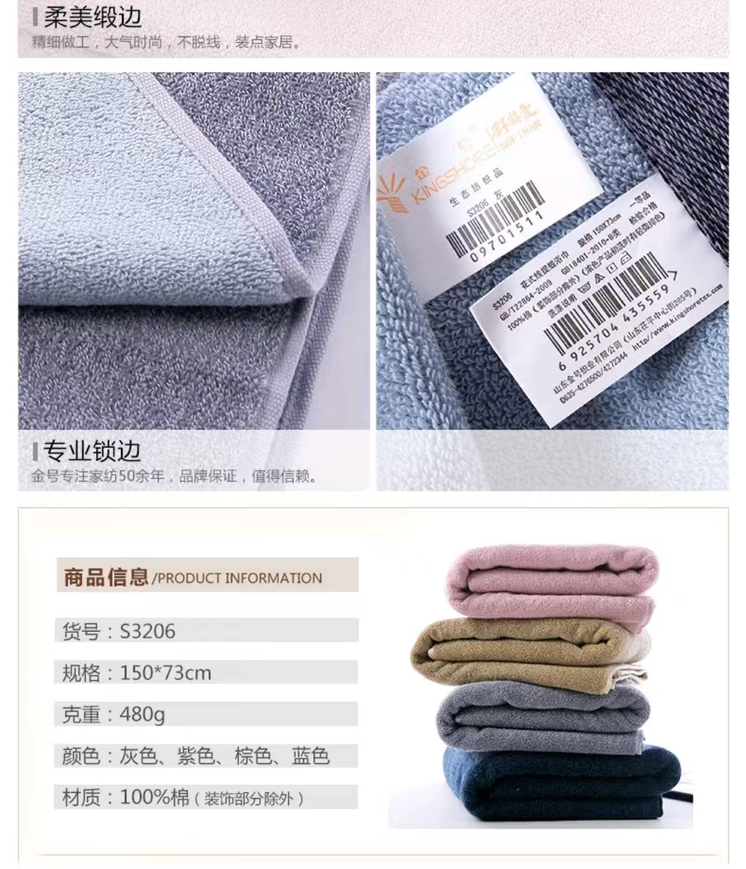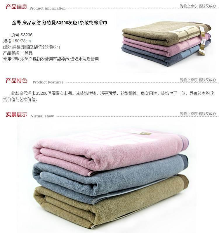 商品标题:金号舒特曼S3206花式线提缎*浴巾150*72cm480g 灰色(条)