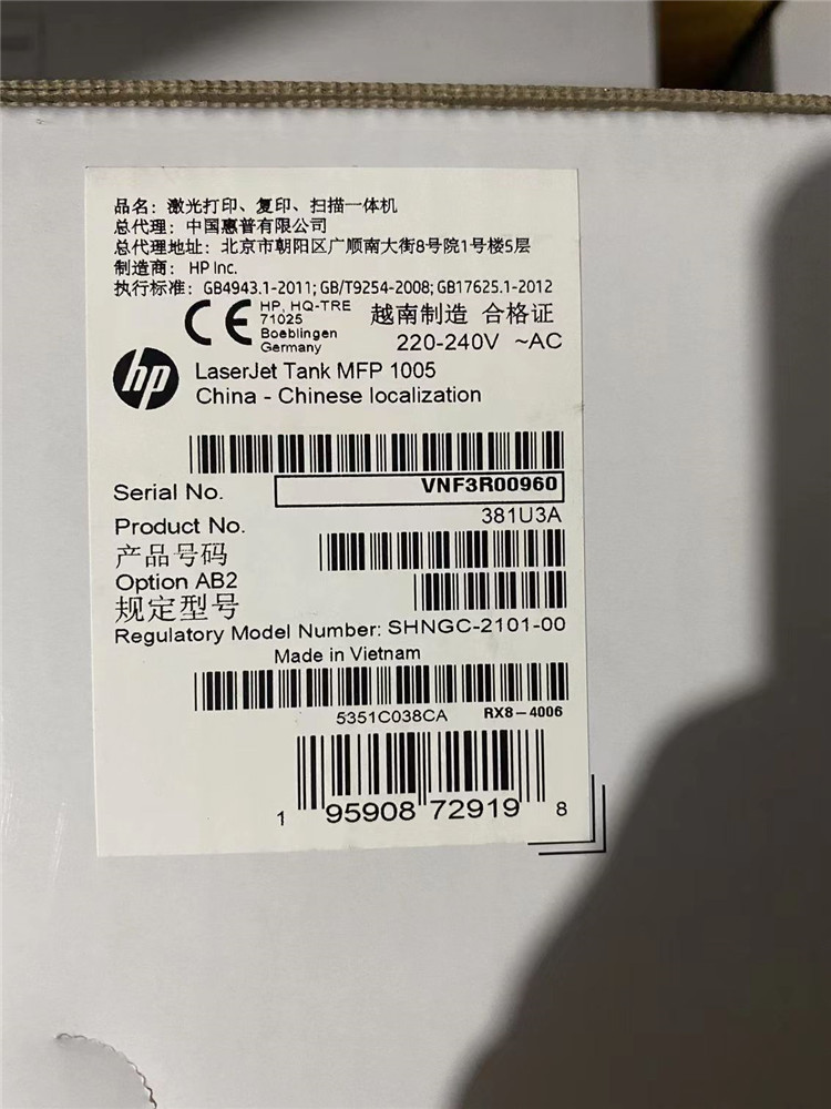 惠普 Tank 1005 黑白激光一体机A4(打印/复印/扫描)(单位:台)(含安装)