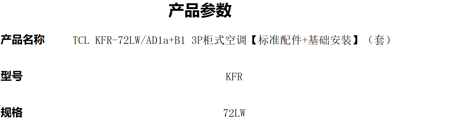 商品标题:TCL KFR-72LW/AD1a+B1 3P柜式空调(套)【标准配件+基础安装】