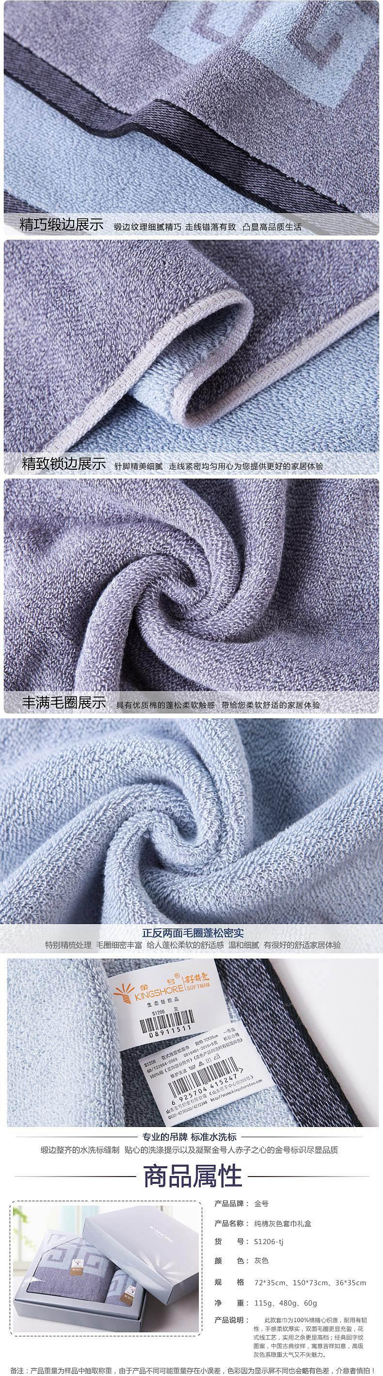 商品标题:金号舒特曼双面毛圈(S3206浴巾+S1206毛巾+S6206方巾)灰色礼盒三件套 礼盒随机(盒)