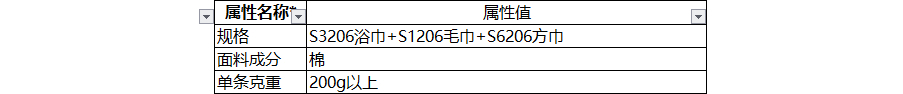 型号:S3206浴巾+S1206毛巾+S6206方巾