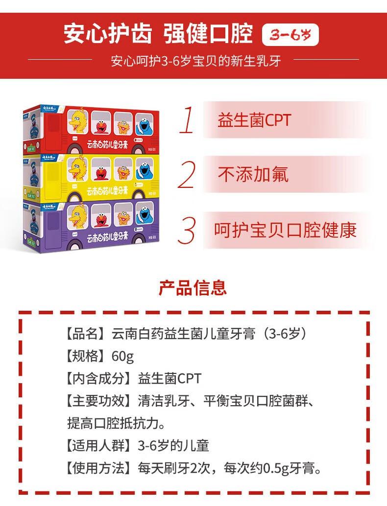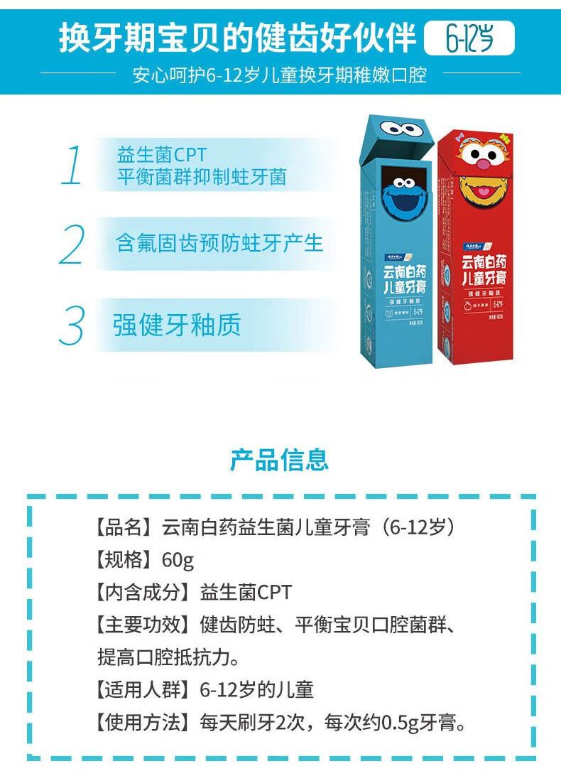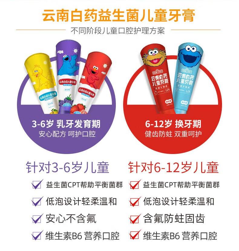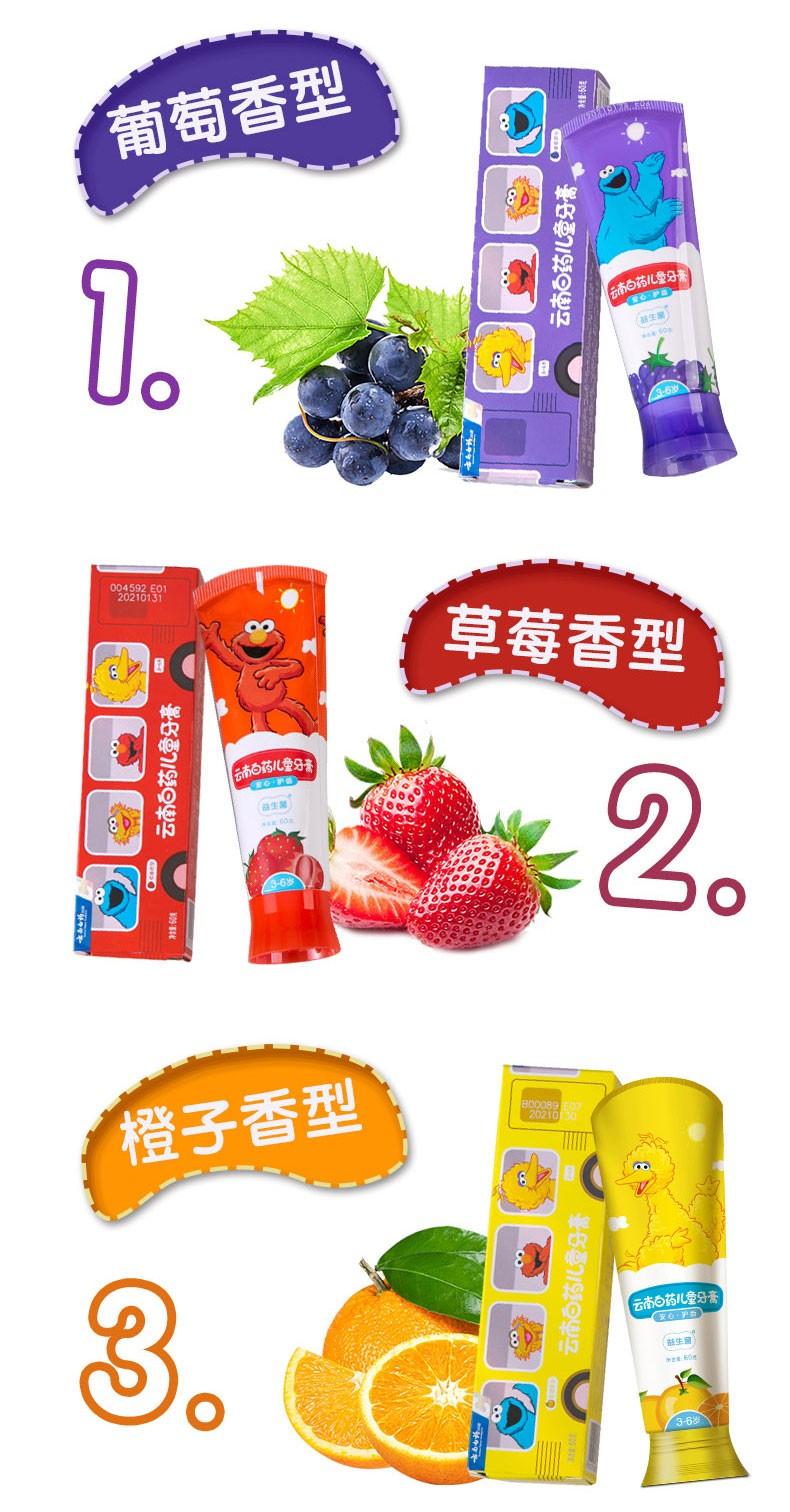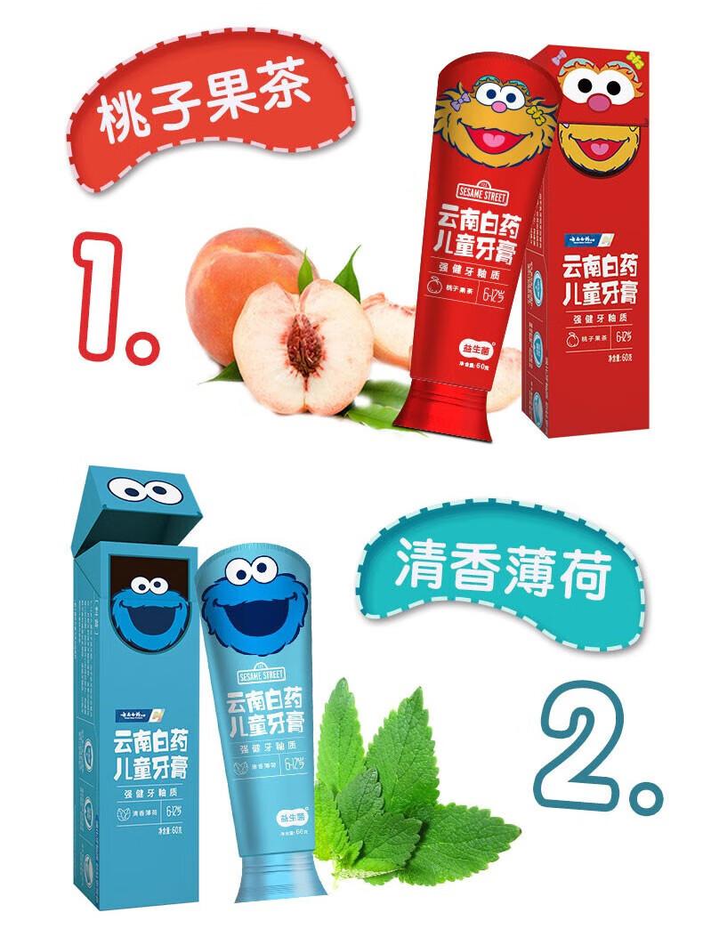 云南白药益生菌儿童牙膏桃子果茶香性芝麻街版60g(单位:支)