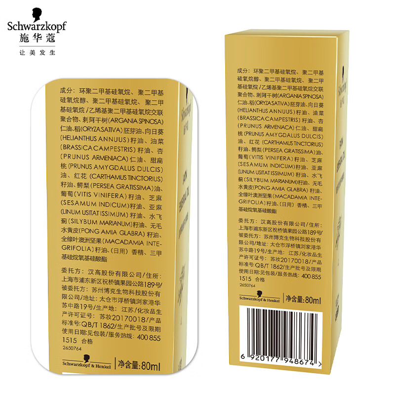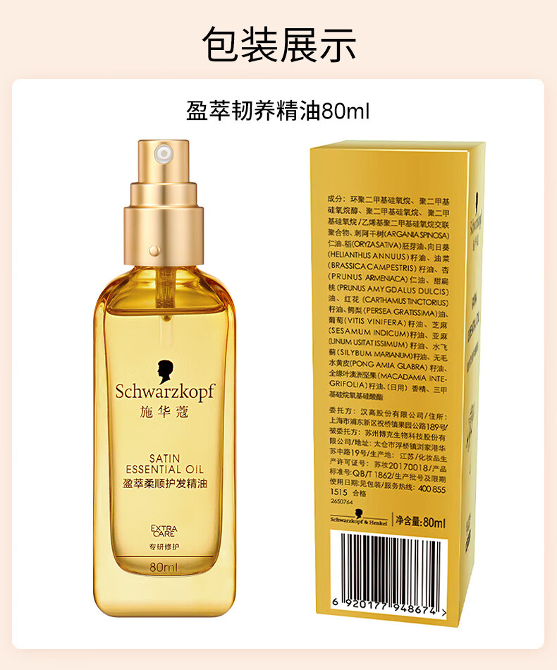 产品(注册/备案)名称:施华蔻盈萃韧养护发精油