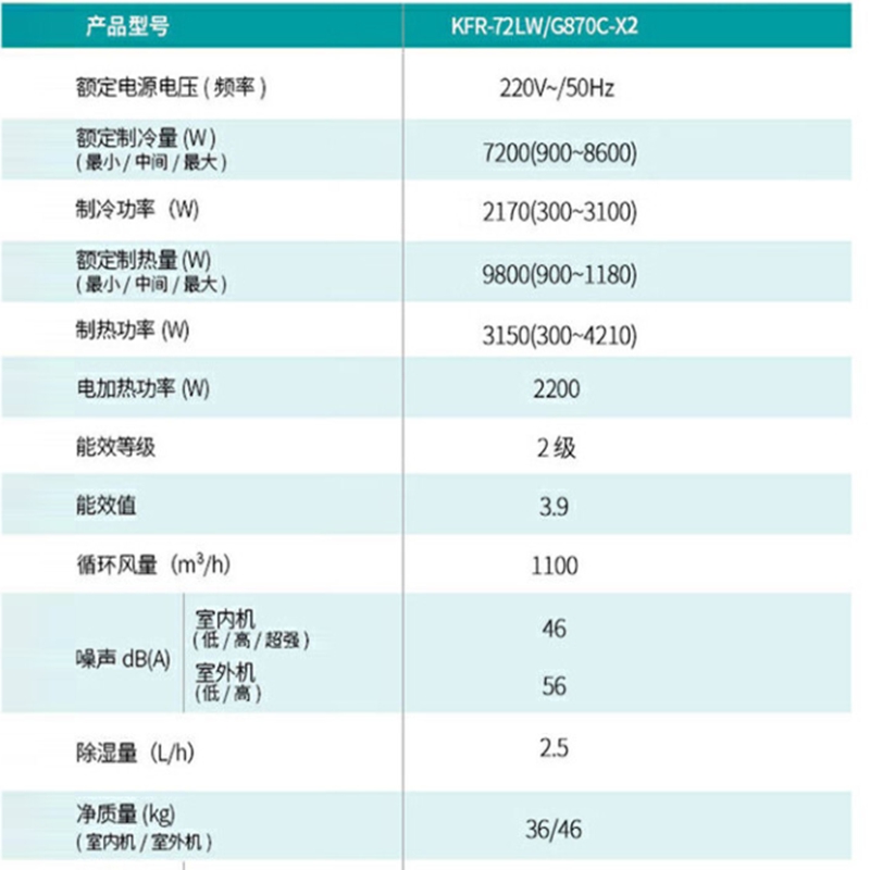 型号:KFR-72LW/G870C-X2