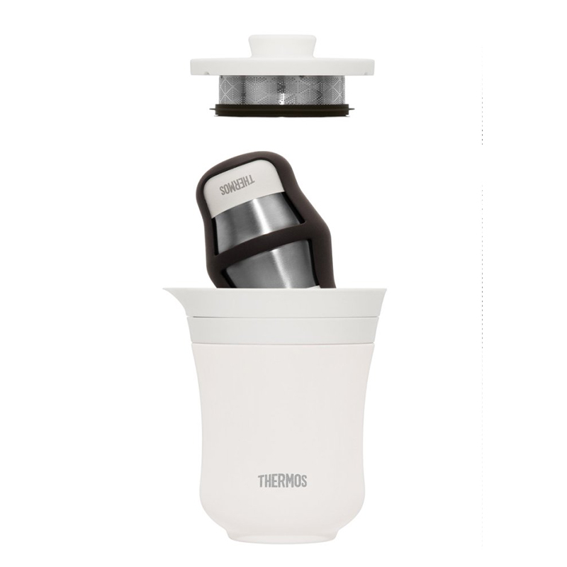 膳魔师(THERMOS)TCMU-200-WH 保温杯260ml旅行茶壶茶杯套组伴手礼品露营便携水杯子雲白色 (单位:套)