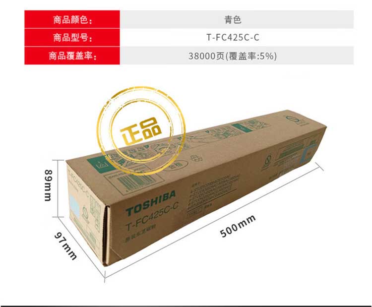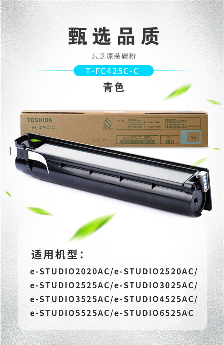 商品标题:东芝 T-FC425CC 原装碳粉 青色 高容 适用:2020AC/2520AC/2525AC/3025AC/3525AC/4525AC/5525AC/6525AC(单位:支)