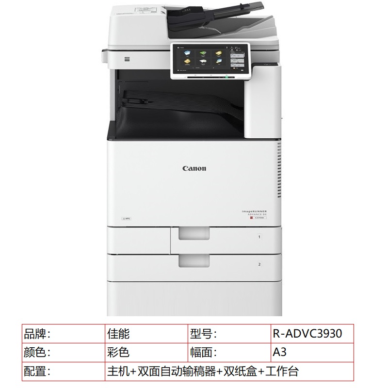 商品标题:佳能 iR-ADVC3930+双面自动输稿器+双纸盒+工作台(单位:台)