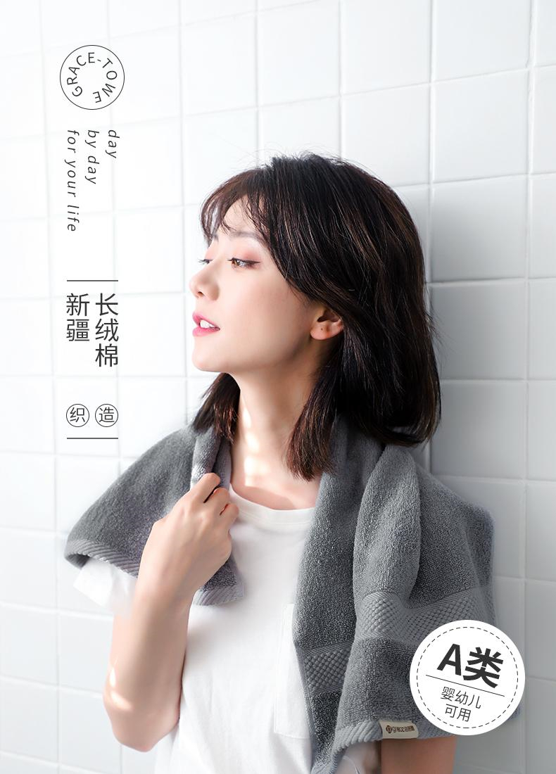 洁丽雅(Grace)W0355 毛巾 A类毛巾单条装 纯棉素色缎档面巾加厚柔软强吸水洗脸巾 100g 72×34cm(条)