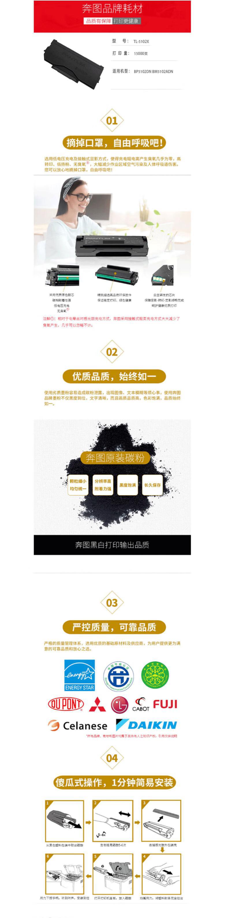 商品标题:奔图TL-5102X原装碳粉盒黑色(支)(适用奔图Pantum BP5102DN/BM5102ADN激光打印机)
