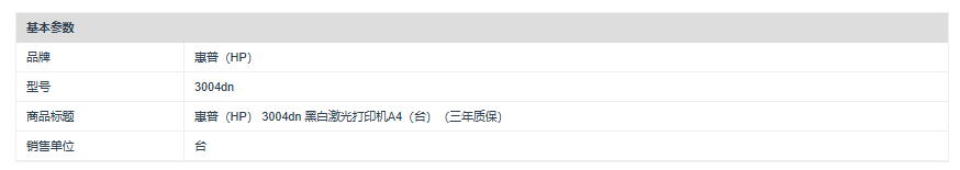 商品标题:惠普(HP) 3004dn 黑白激光打印机A4(台)