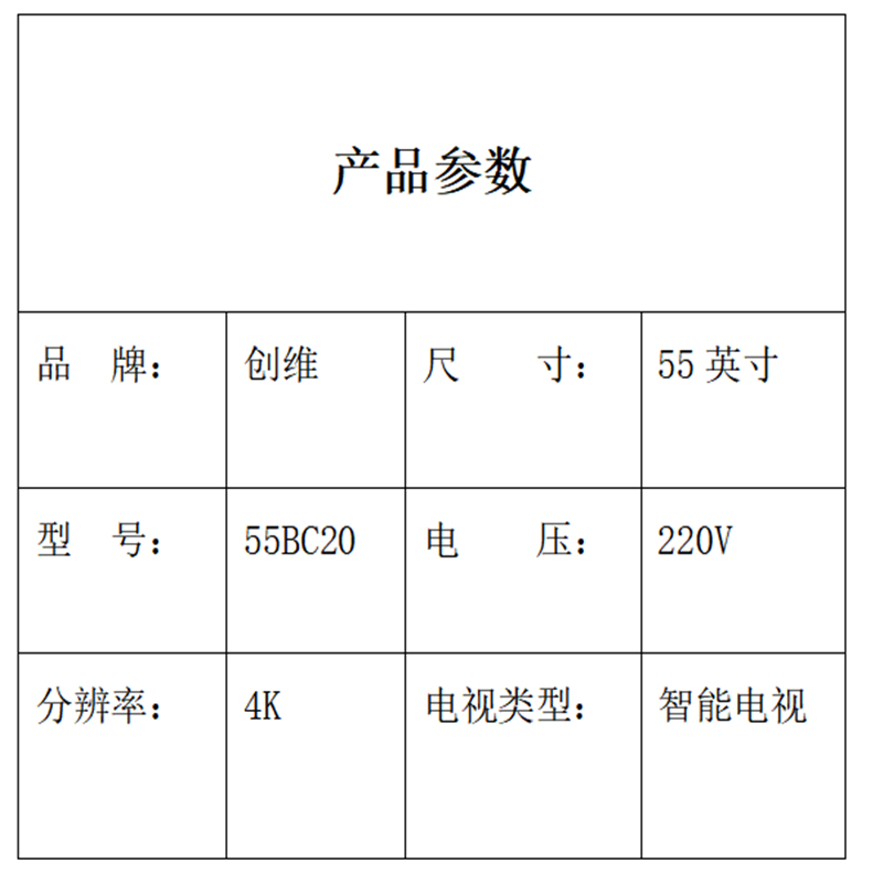 商品标题:创维(Skyworth)55BC20 55英寸全面屏智能平板电视(单位:台)【含基础挂装】