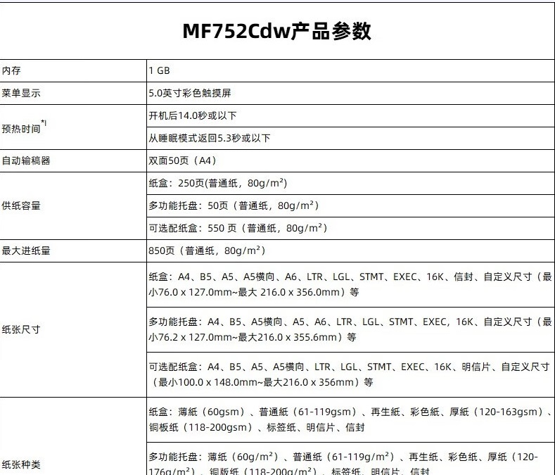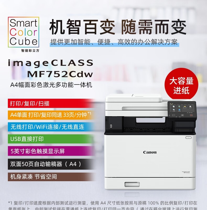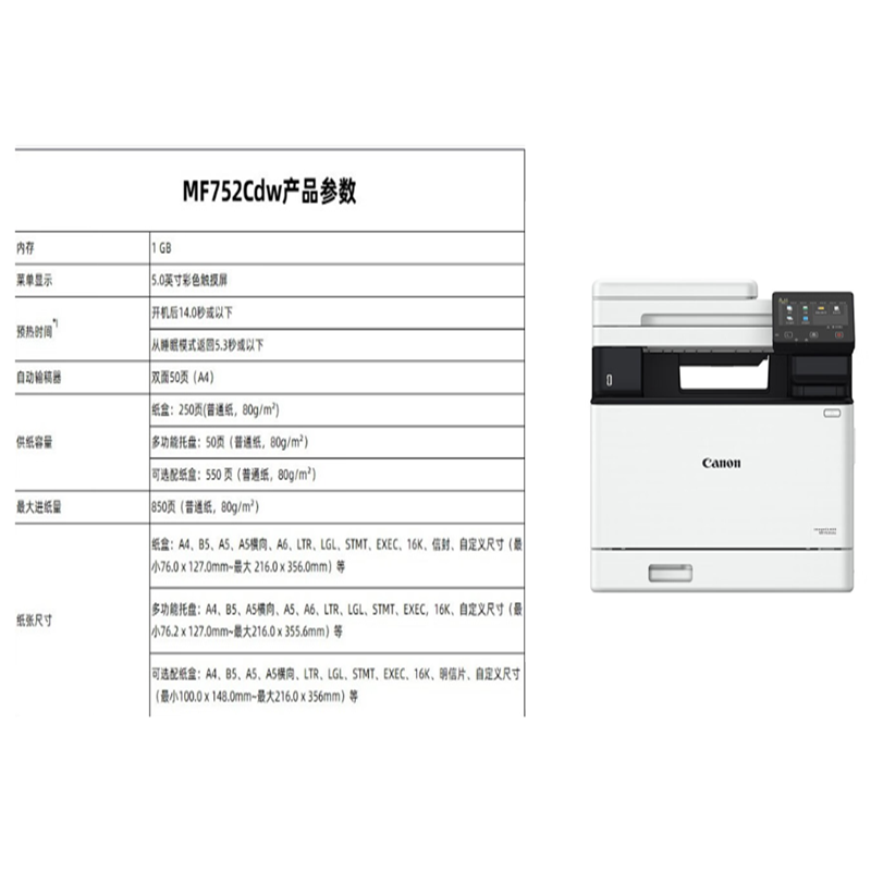 商品标题: 佳能iC MF752Cdw无线A4幅面彩色激光多功能一体机(单位:台)