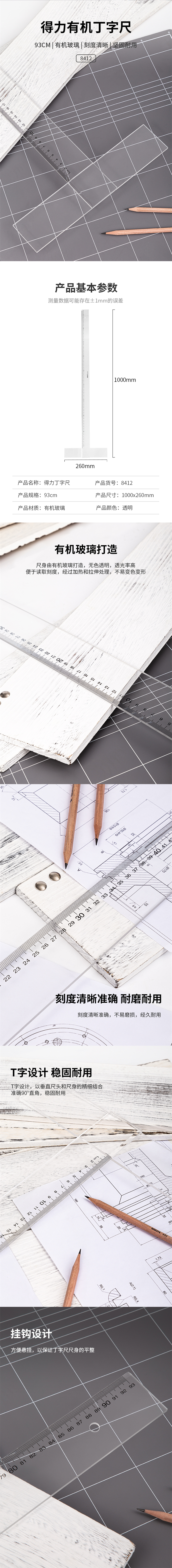 商品标题:得力 8412 有机丁字尺 93cm (单位:只)