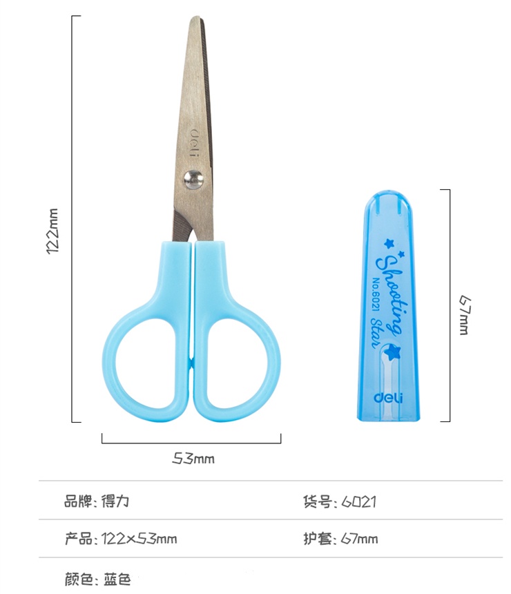 商品标题:得力6021 121mm(4.75‘)学生剪刀(蓝色)(单位:把)