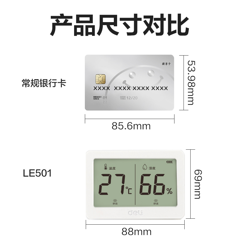得力LE501-WH电子温湿度计(白色)(1台/盒 赠送7号电池*2)
