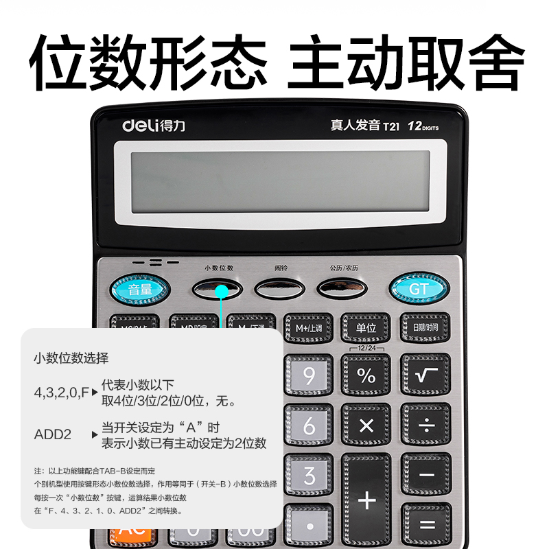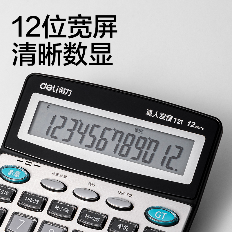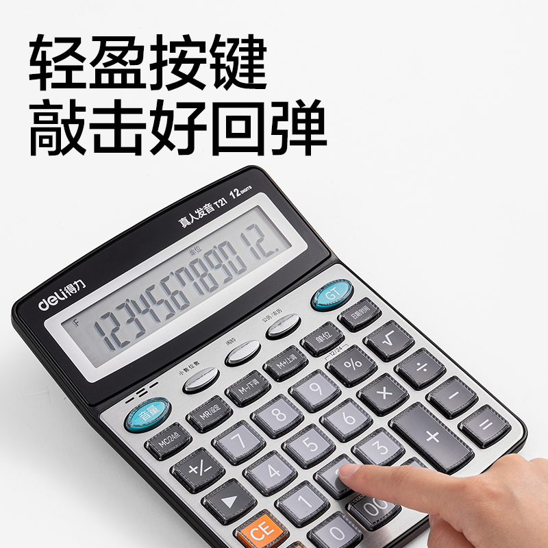 商品标题:得力T21计算器-语音计算器(银色)(台)