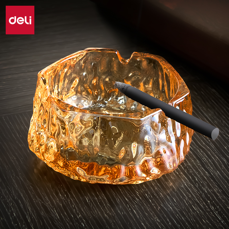 得力LQ173几何烟灰缸(小号)(玻璃)((黄色)(1个/盒)