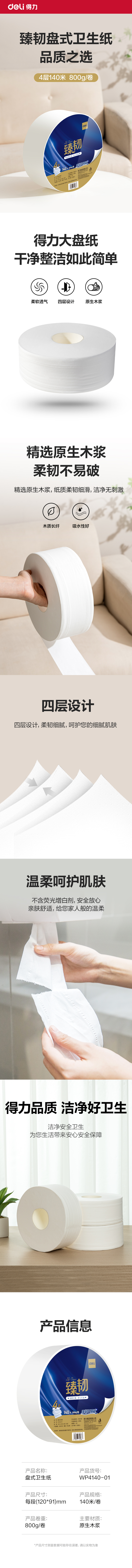 商品标题:得力臻韧WP4140-01大盘纸(白色)4层140米