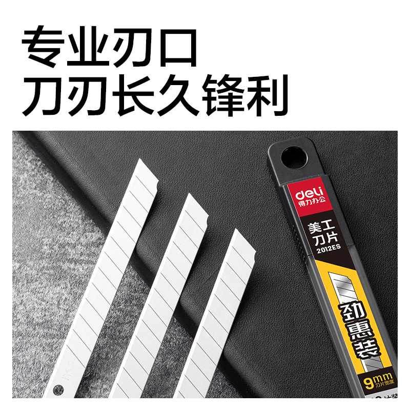 得力2012ES美工刀片9mm60°SK5(银色)(盒)