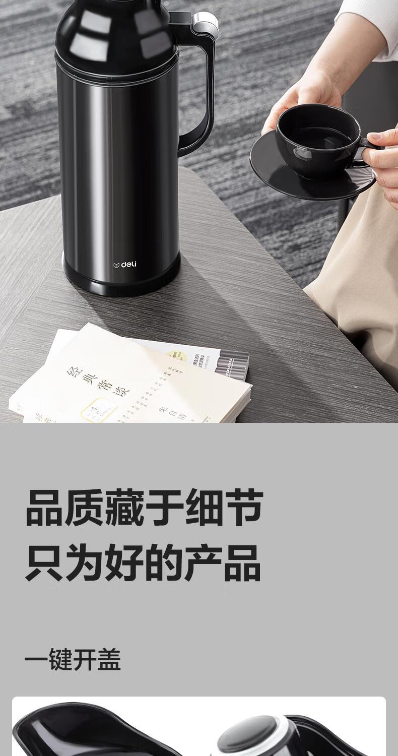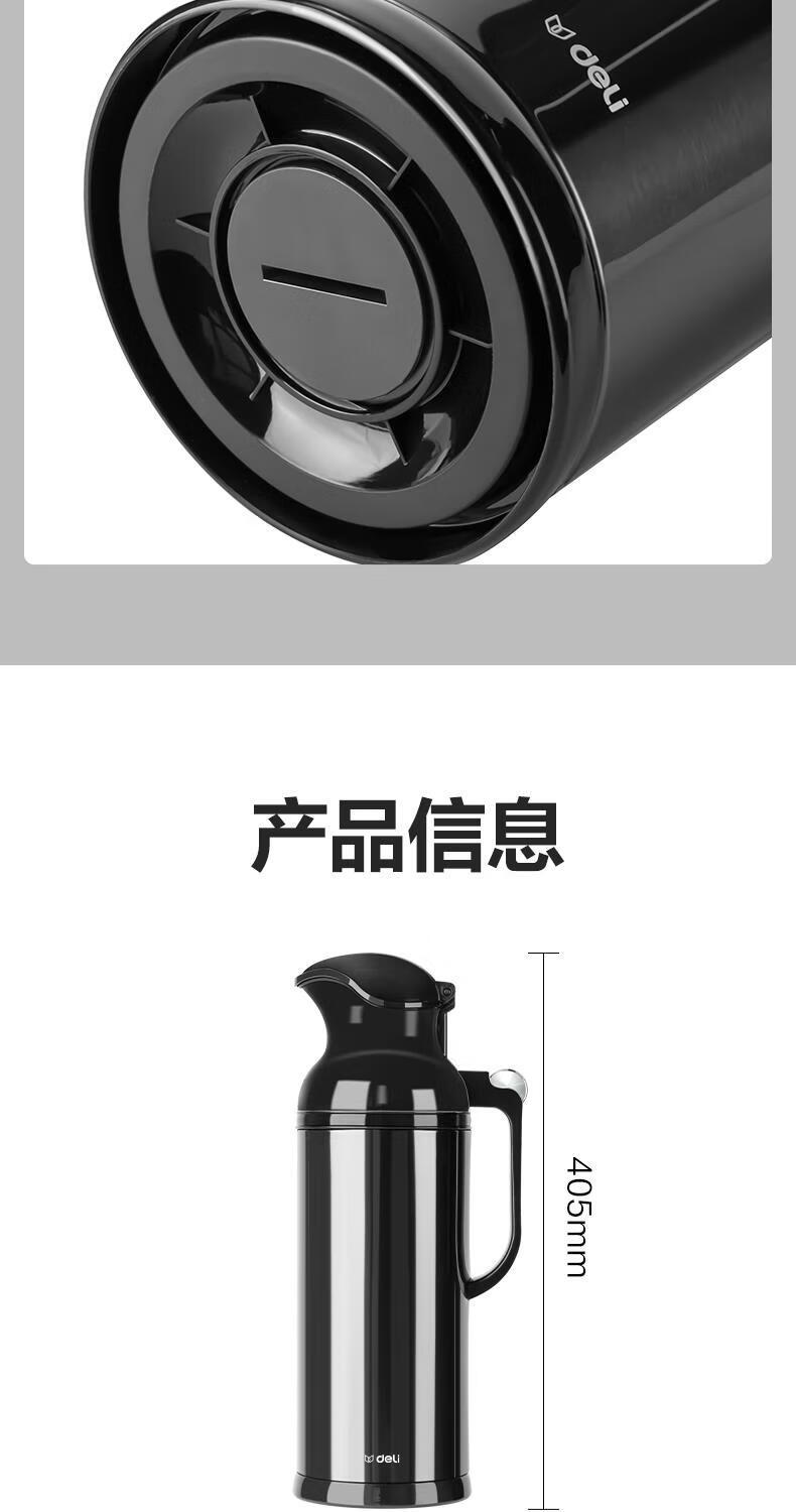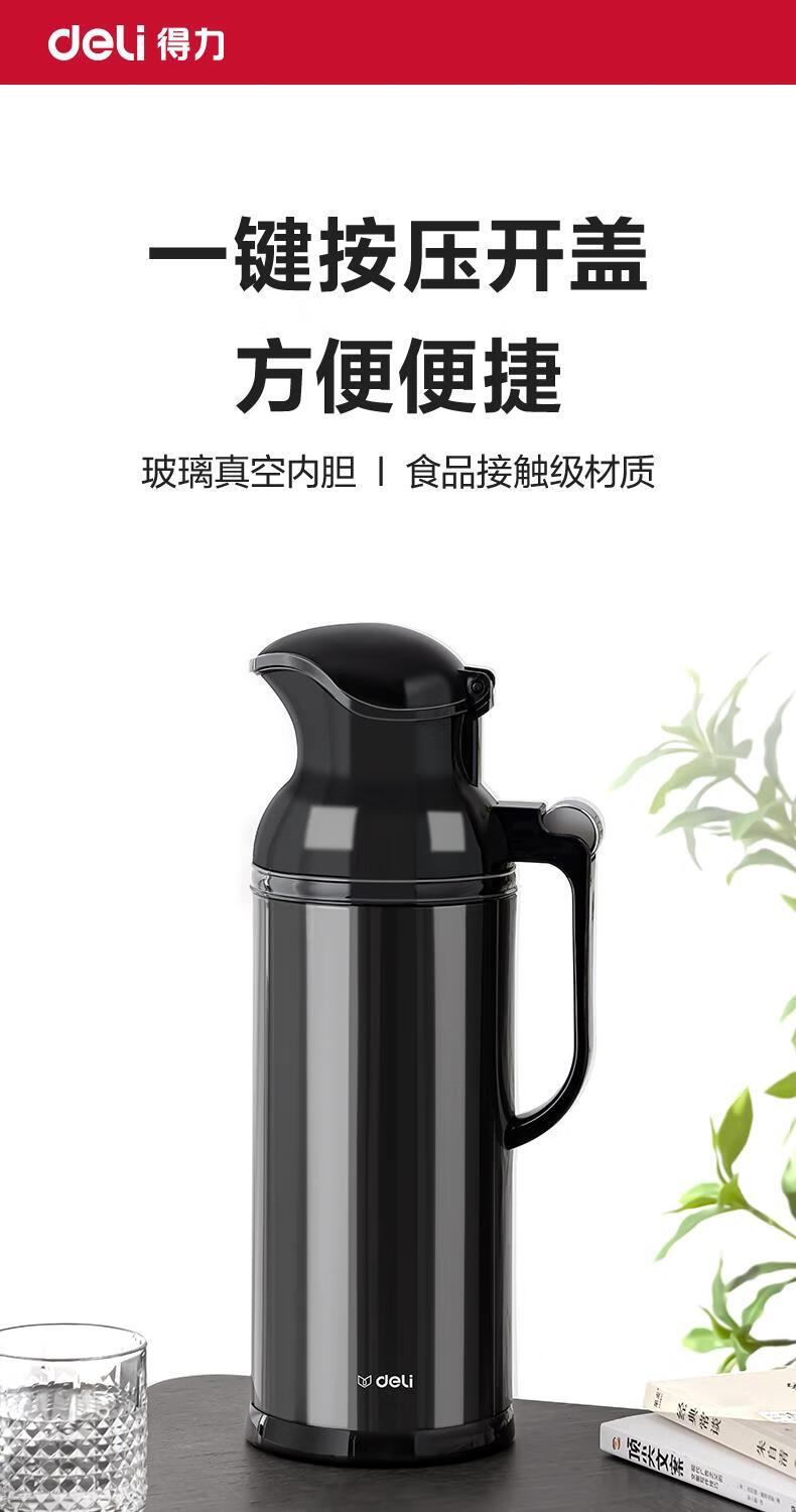 商品标题:得力LL112-保温壶-玻璃内胆2L(黑)(1个/彩盒)