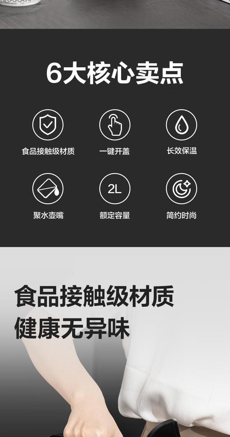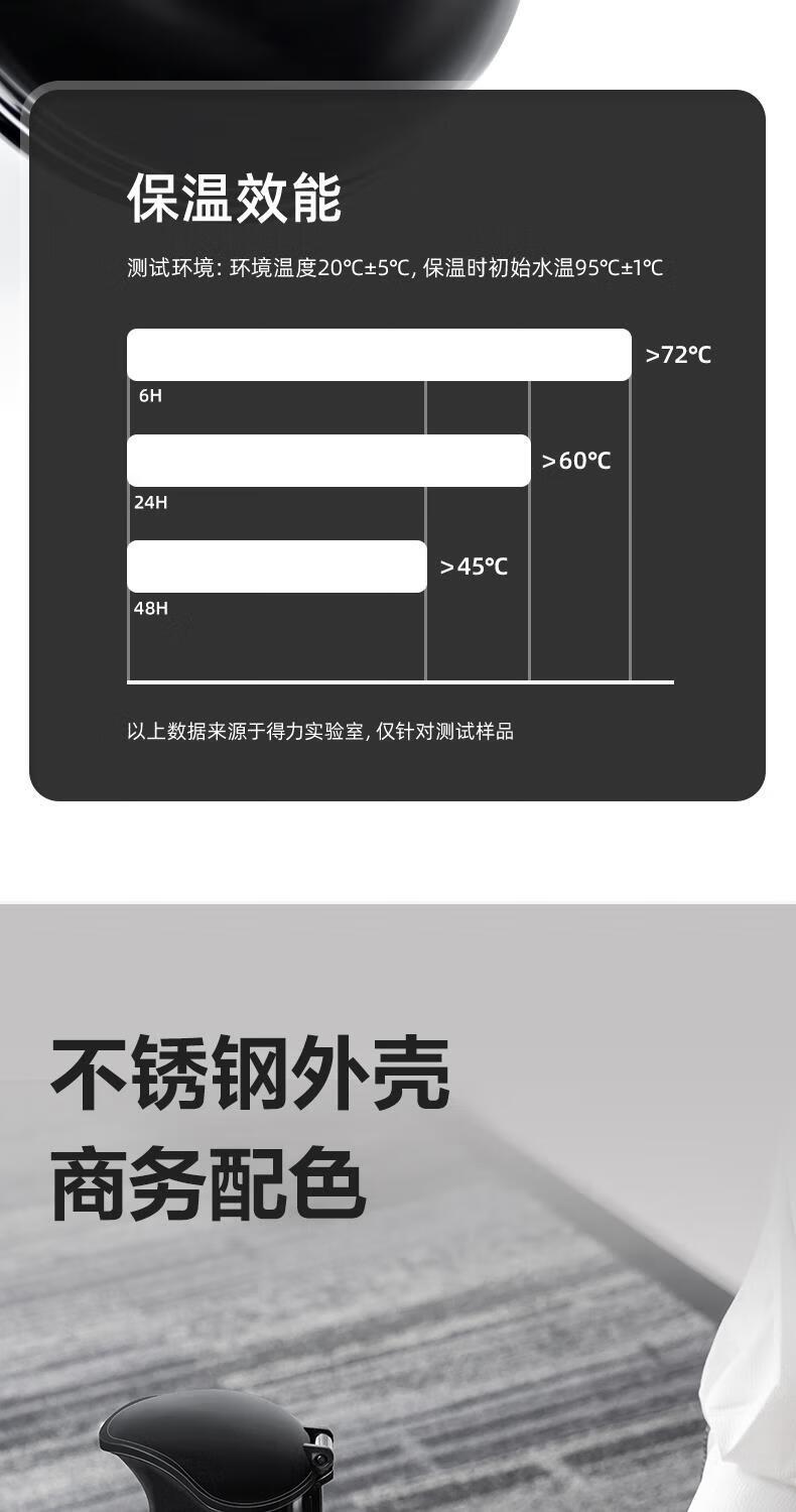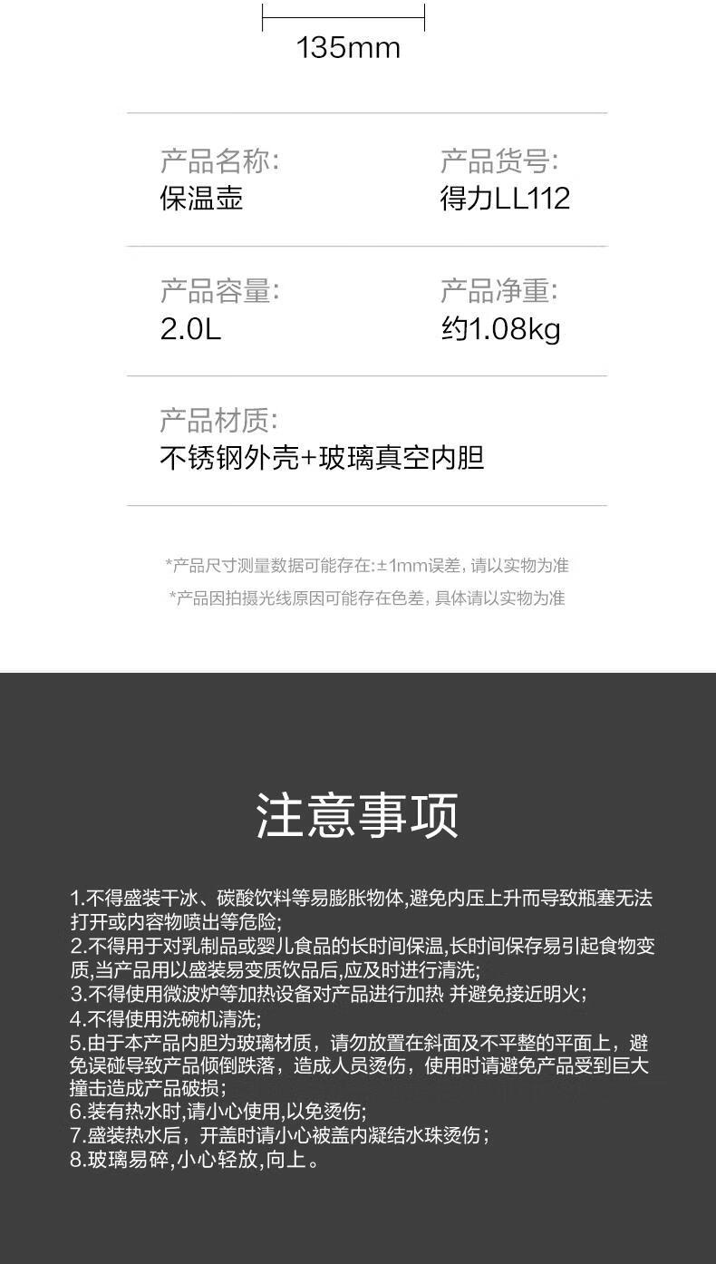 商品标题:得力LL112-保温壶-玻璃内胆2L(黑)(1个/彩盒)