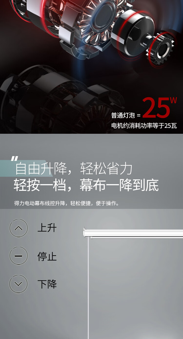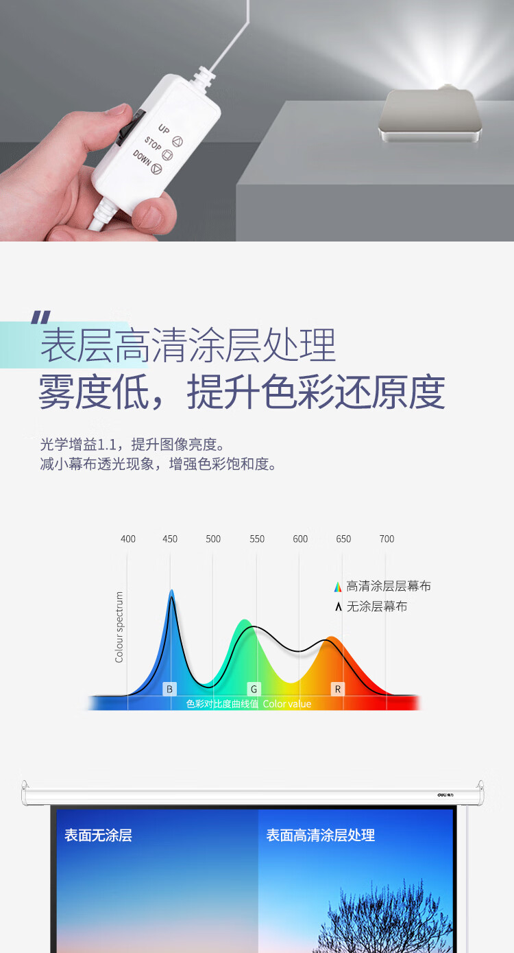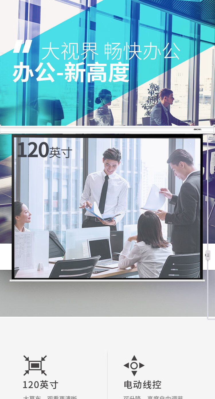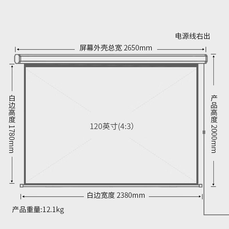 商品标题:得力 50493 电动投影幕布 120英寸 4:3 (白色)(单位:副)