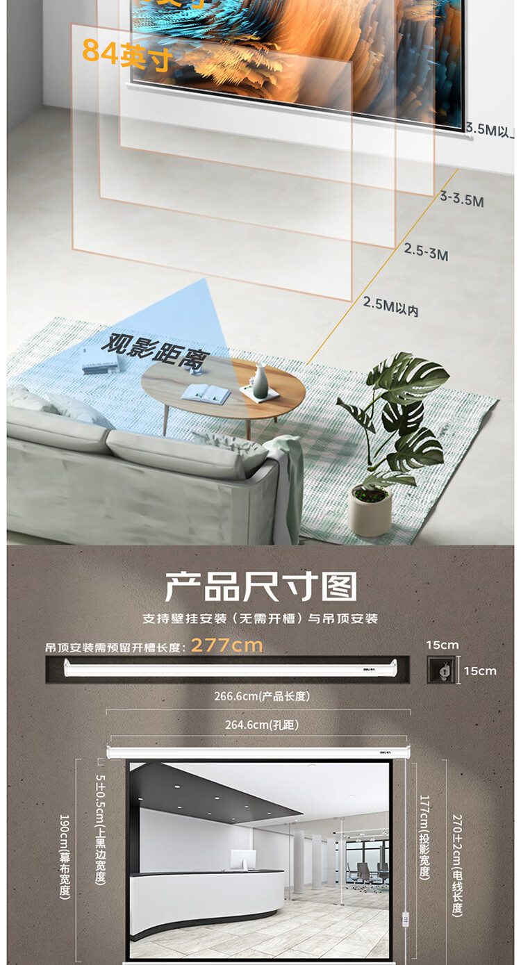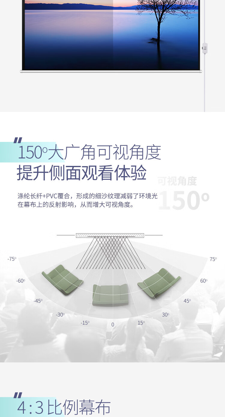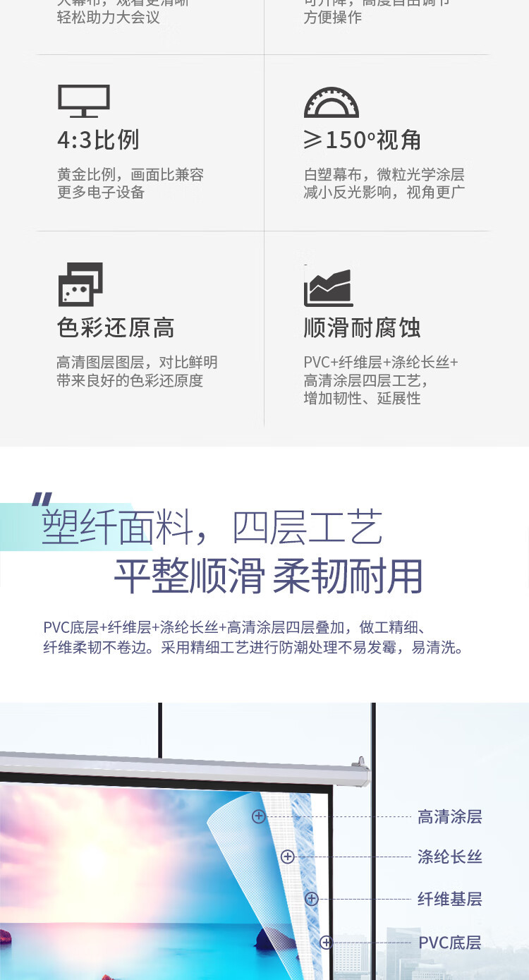 商品标题:得力 50493 电动投影幕布 120英寸 4:3 (白色)(单位:副)
