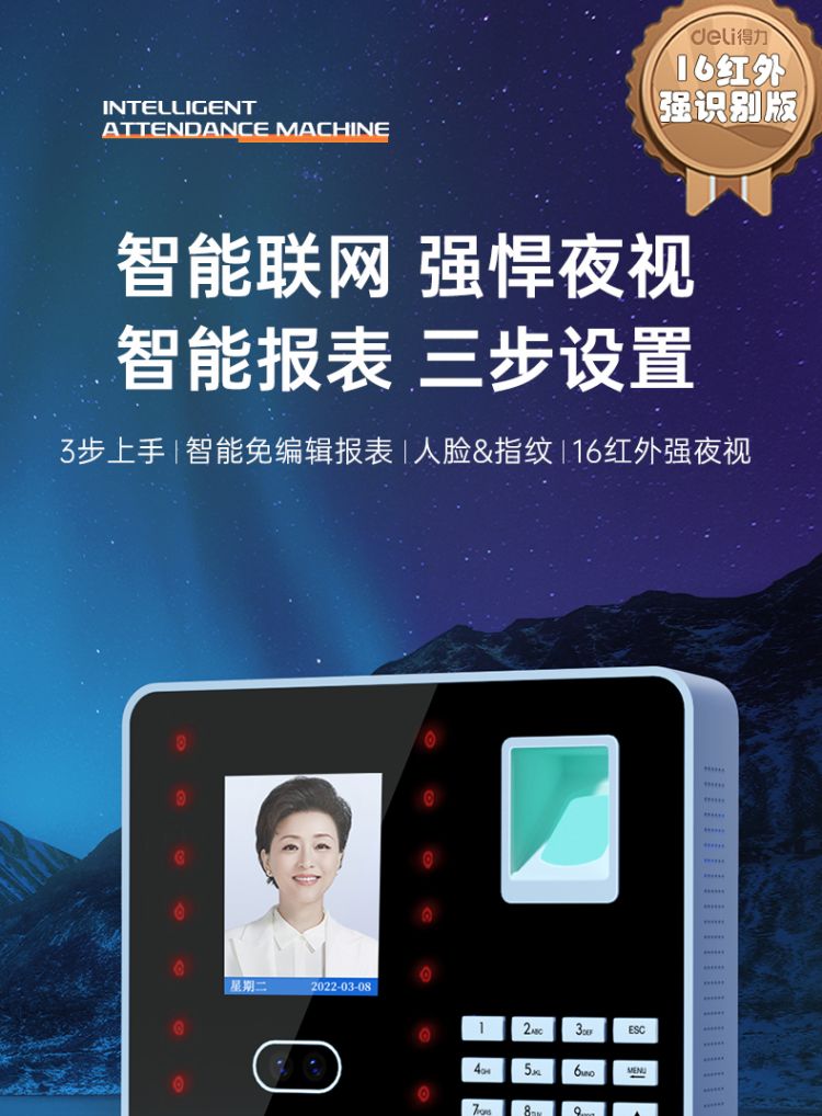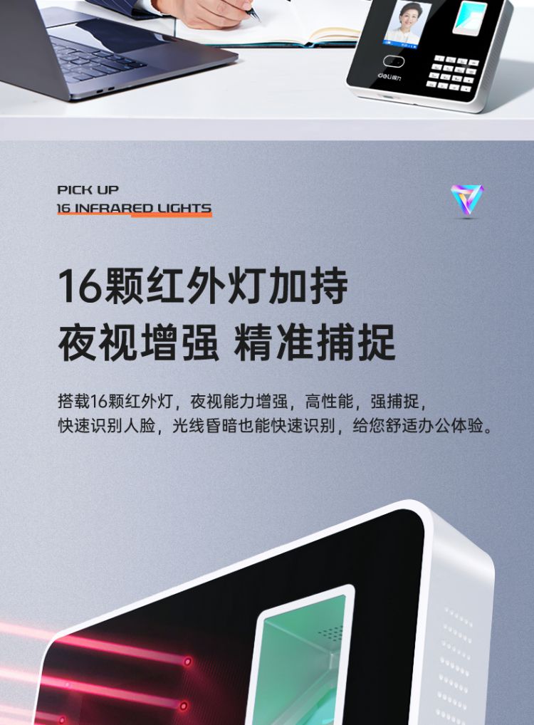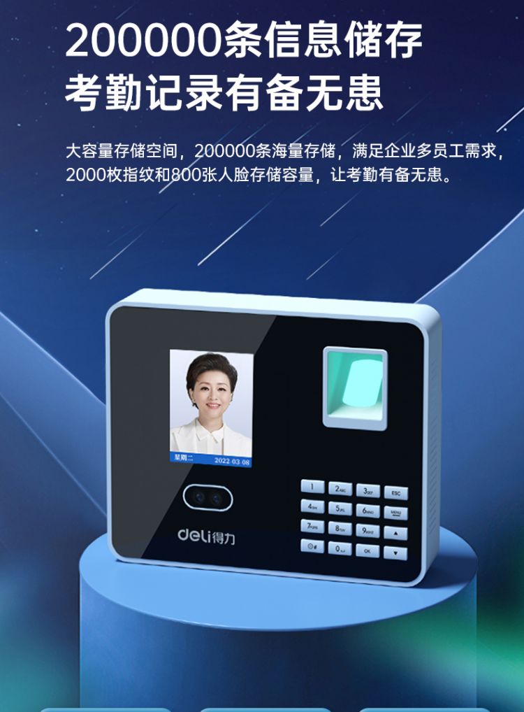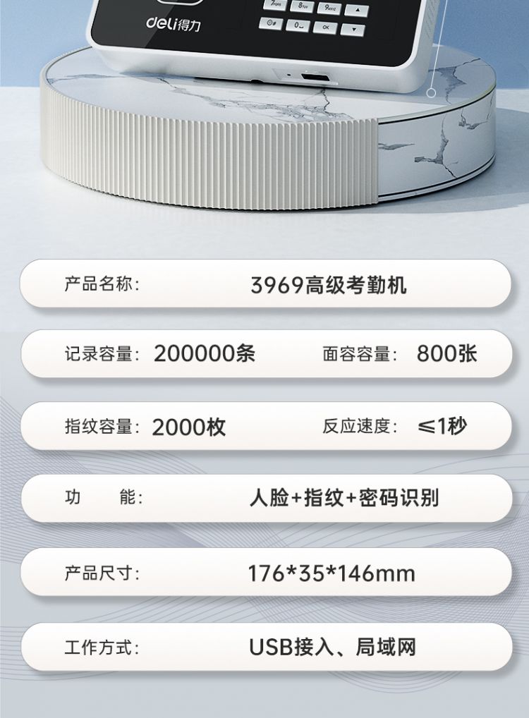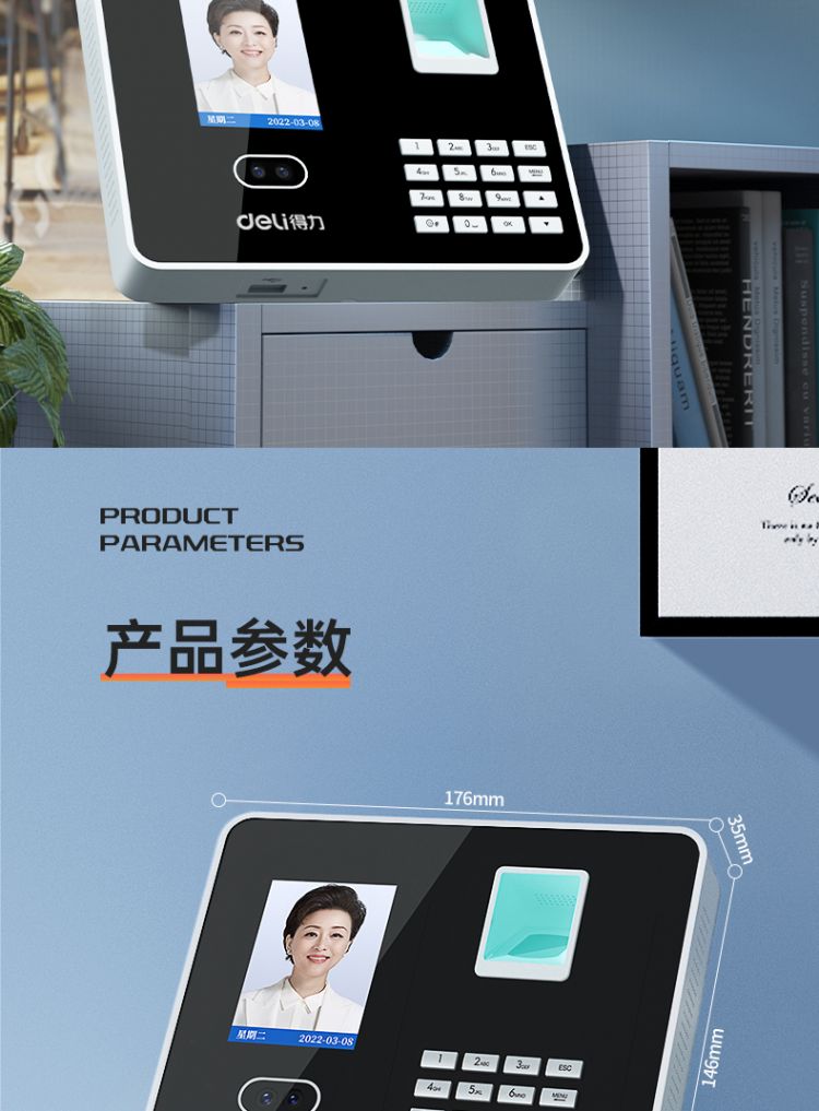 商品标题:得力3969人脸指纹混合考勤机 2.8英寸 176*33*146mm银 (单位:台)