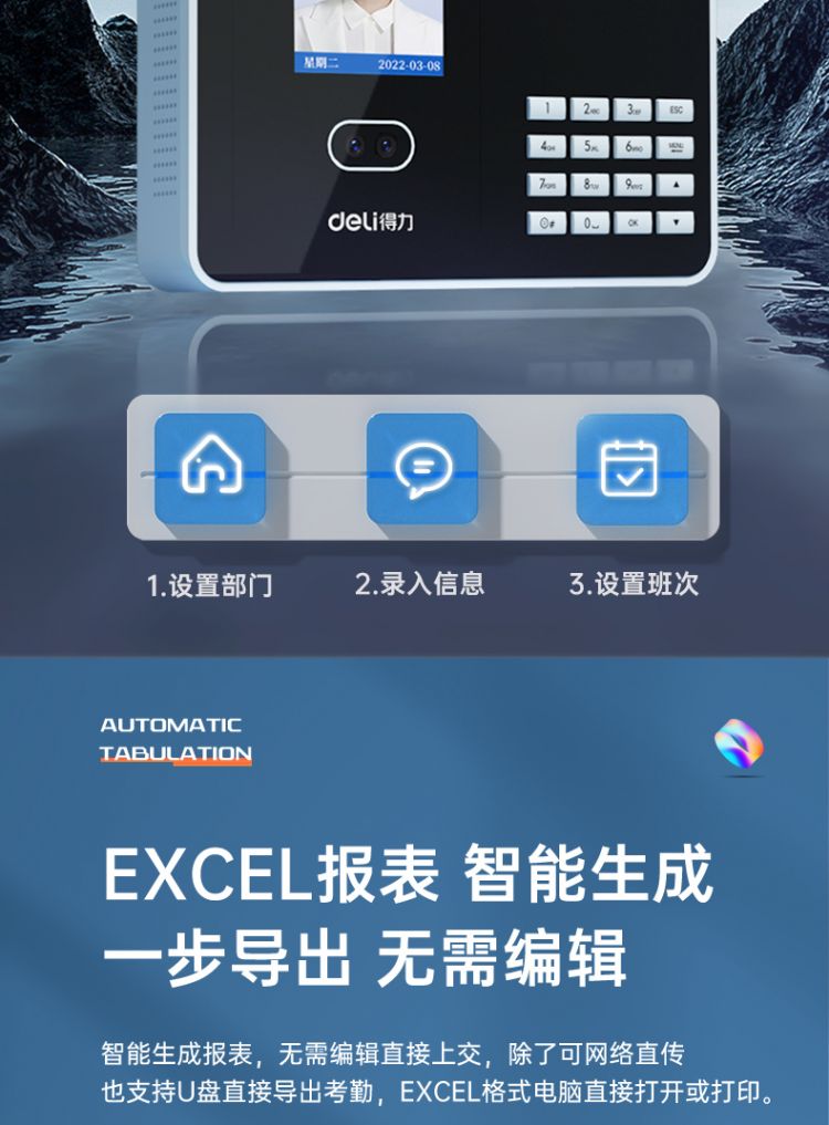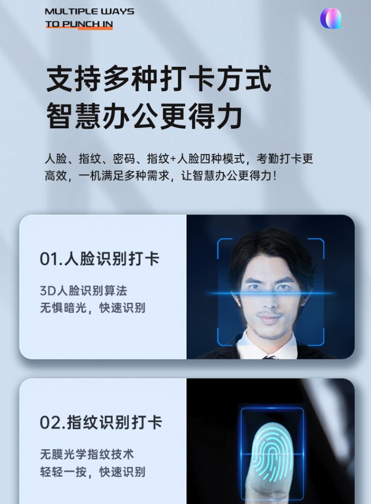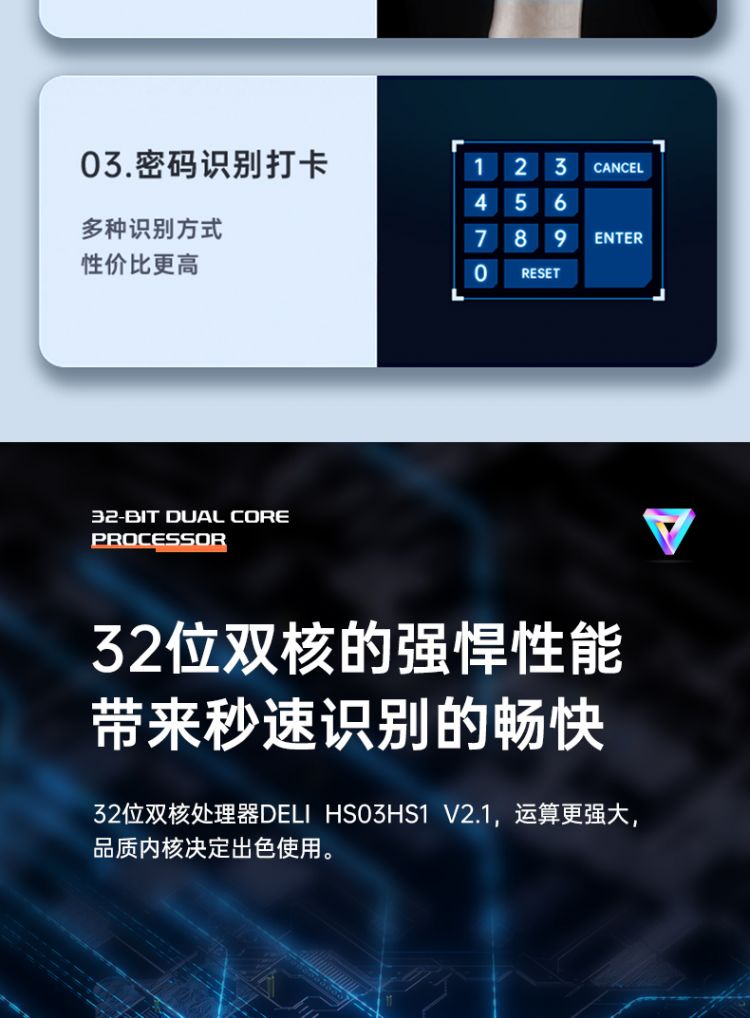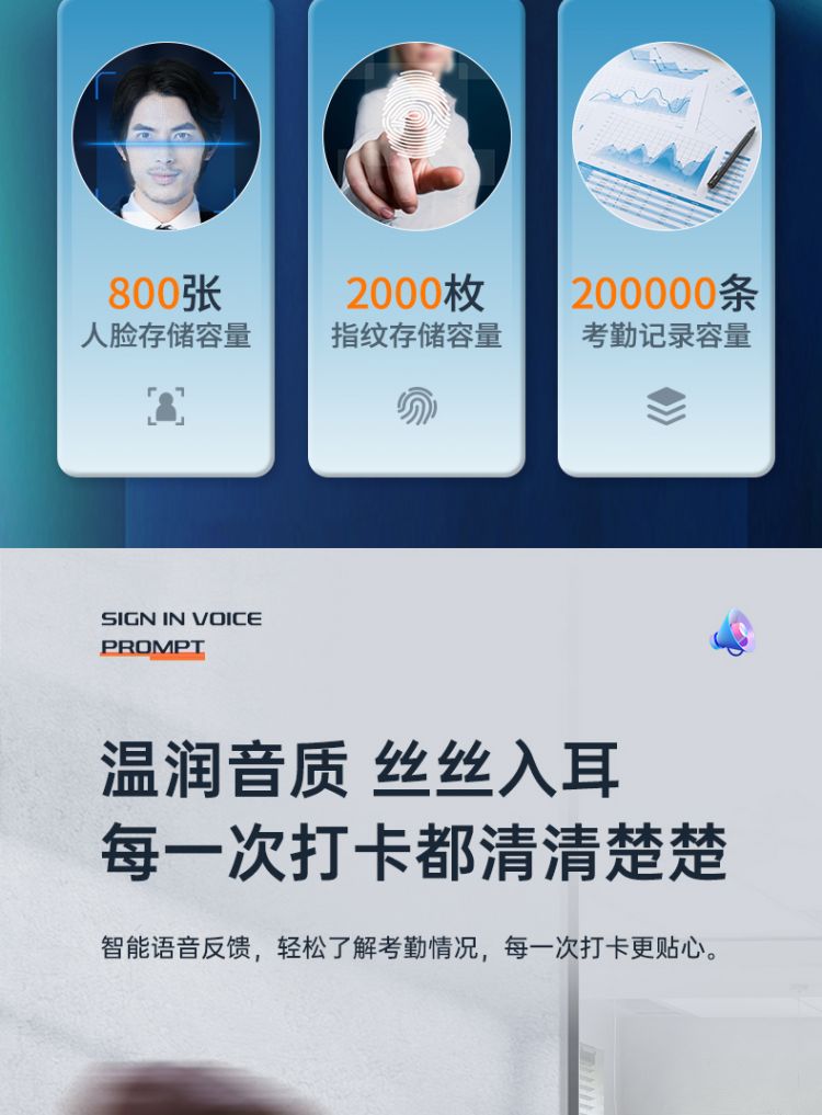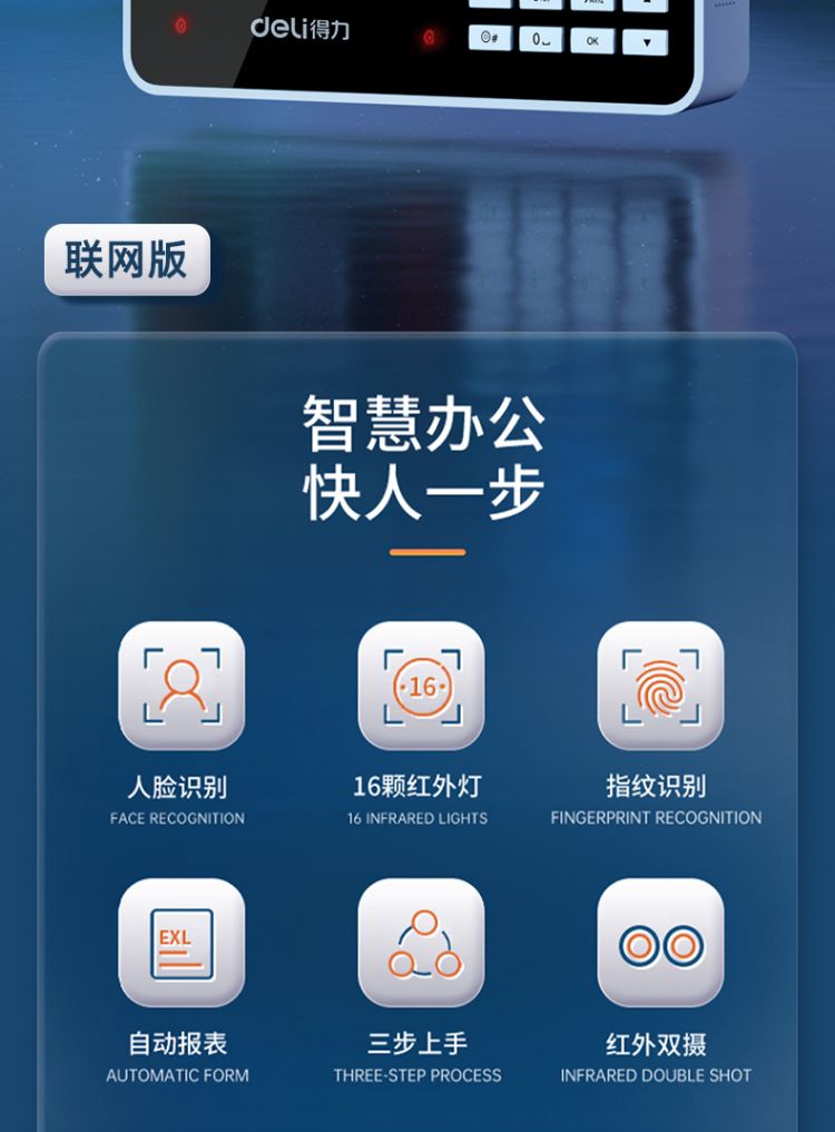 商品标题:得力3969人脸指纹混合考勤机 2.8英寸 176*33*146mm银 (单位:台)