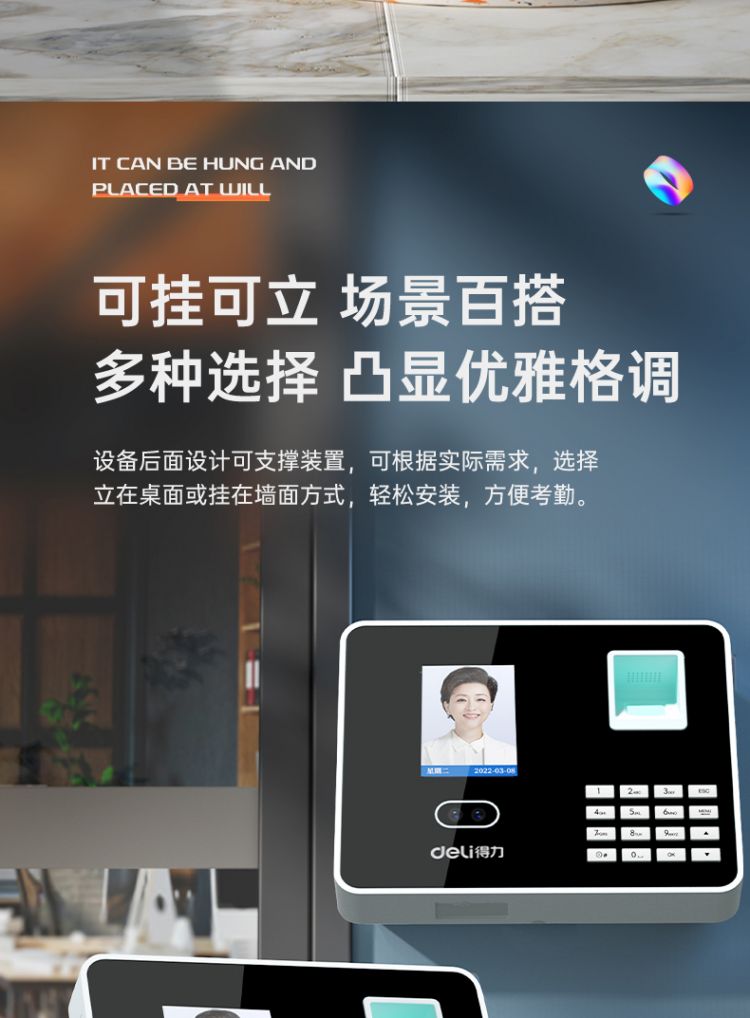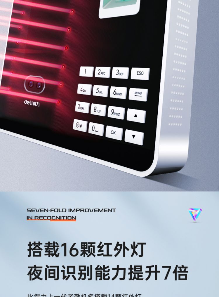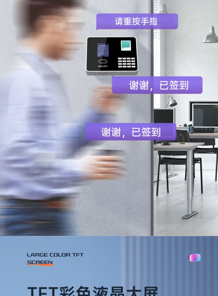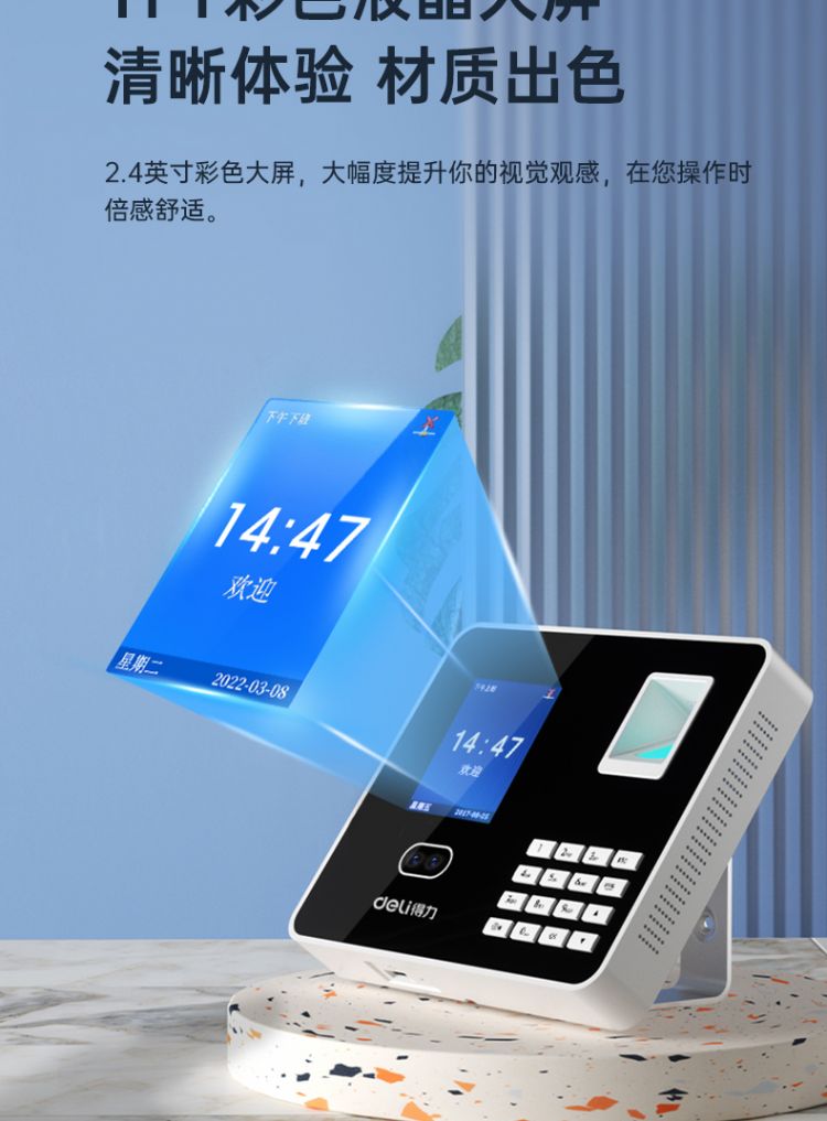 得力3969人脸指纹混合考勤机 2.8英寸 176*35*146mm银 (单位:台)