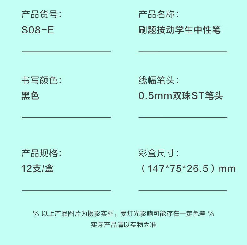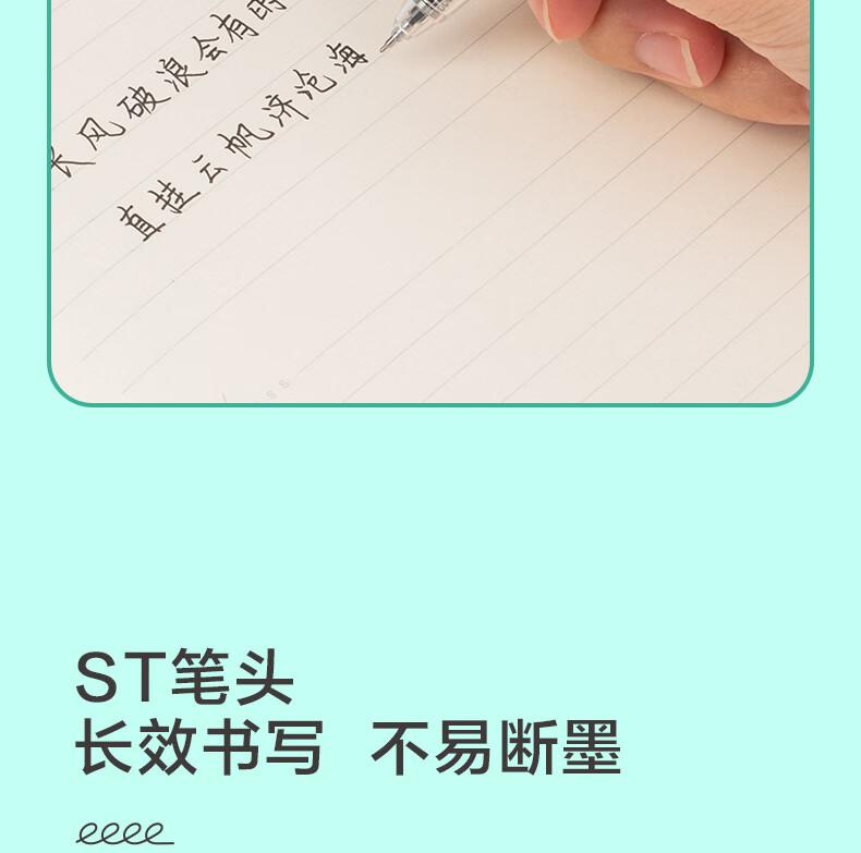 商品标题:得力S08-E速干按动学生中性笔0.5mm 双珠ST头(黑)(支)