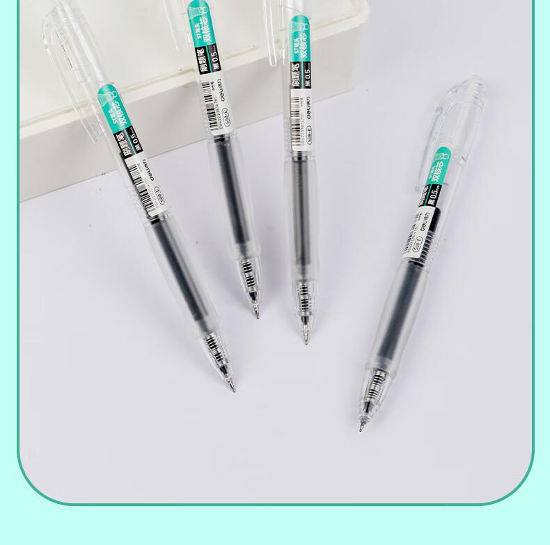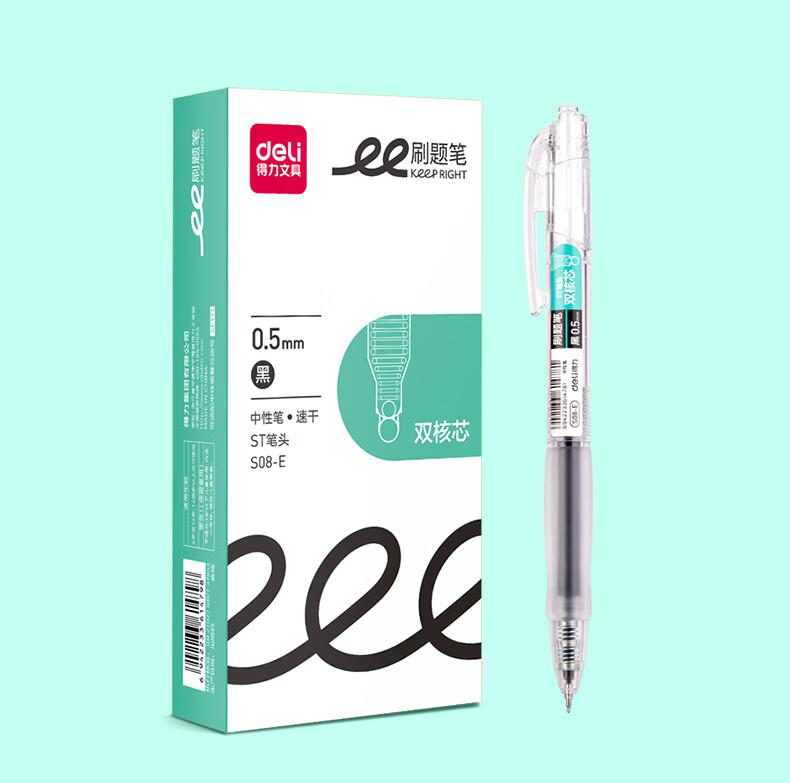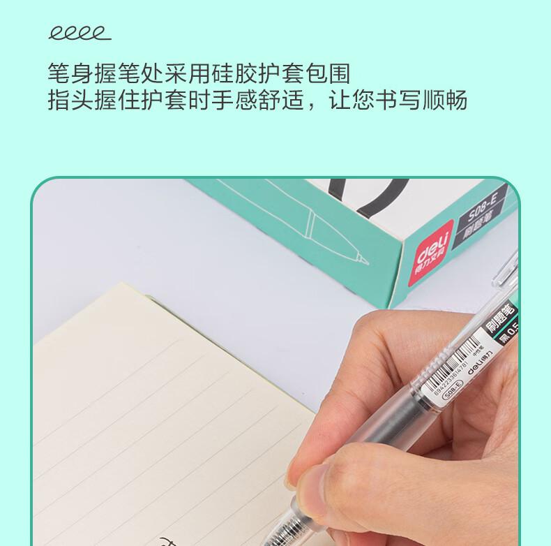 得力S08-E速干按动学生中性笔0.5mm双珠ST头(黑)(支)