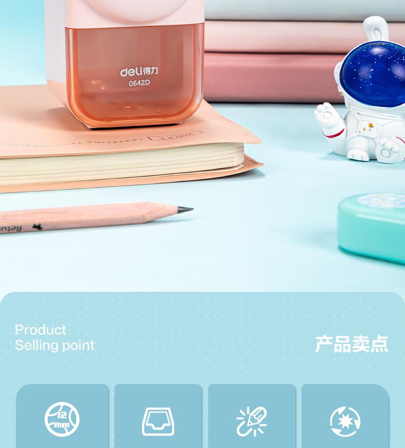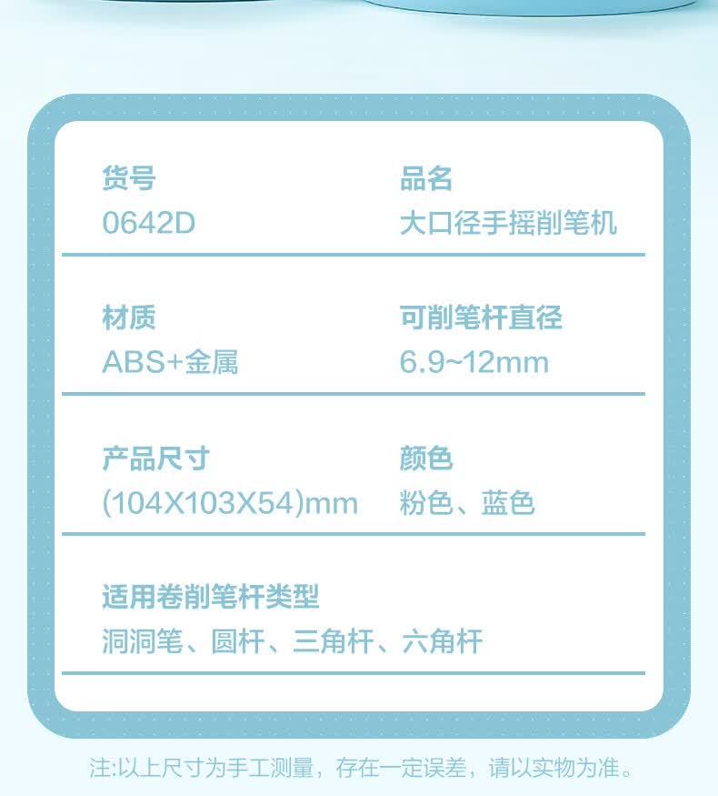 商品标题:得力0642D大口径手摇削笔机(粉色)(盒)