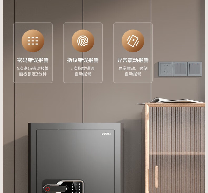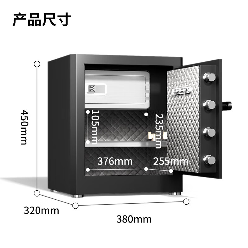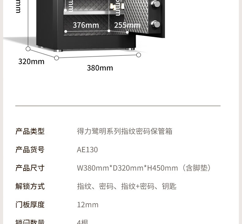 商品标题:得力AE130指纹密码保管箱H450(黑色)(台)