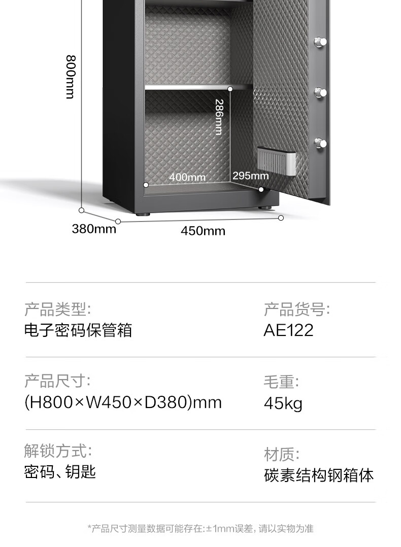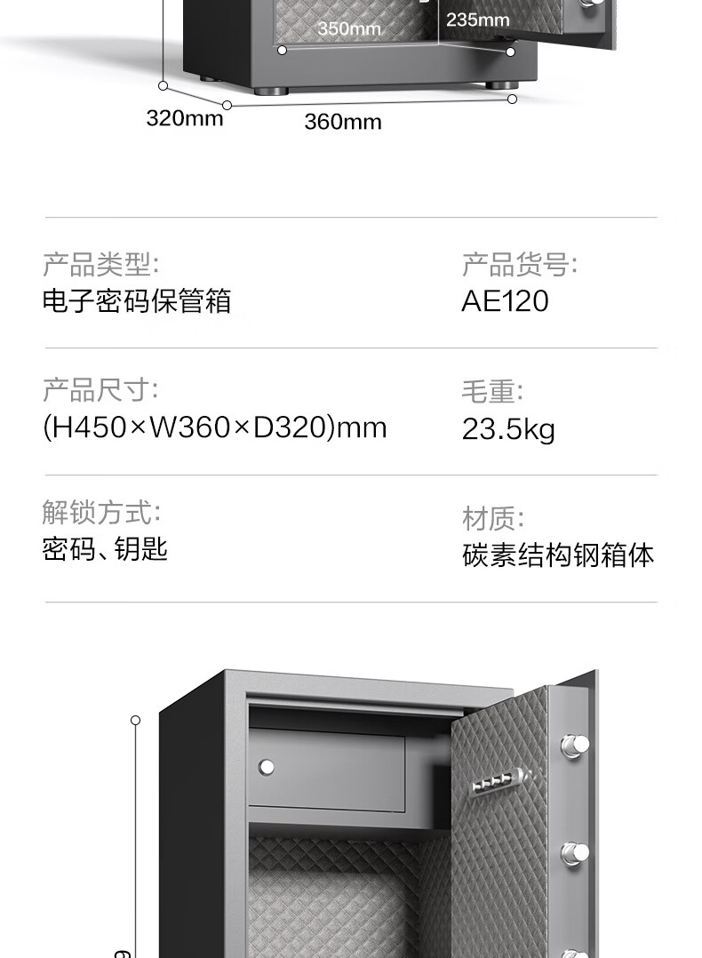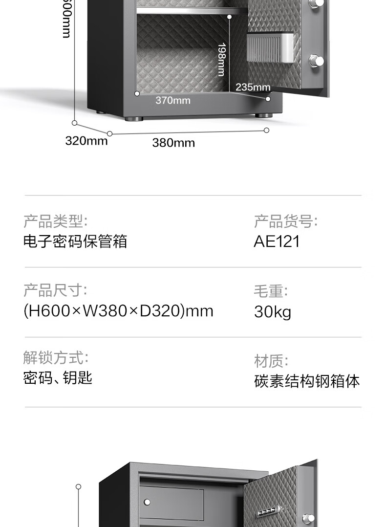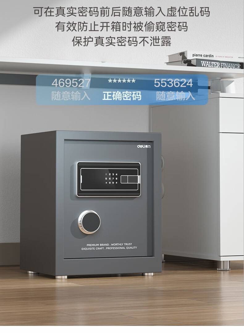 商品标题:得力AE122电子密码保管箱H800(灰色)(台)
