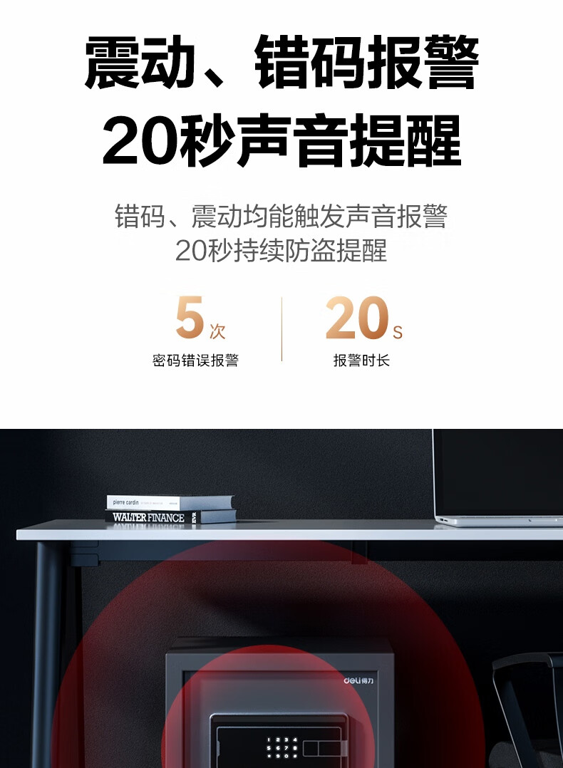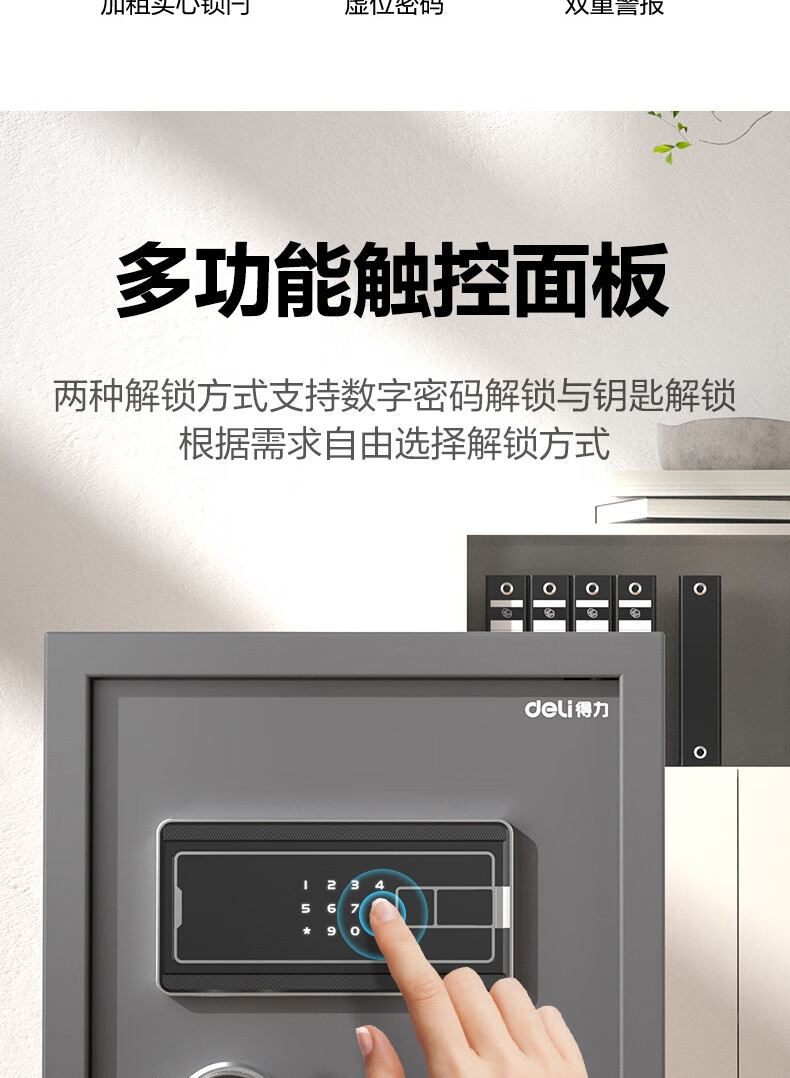 商品标题:得力AE120电子密码保管箱H450(灰色)(台)