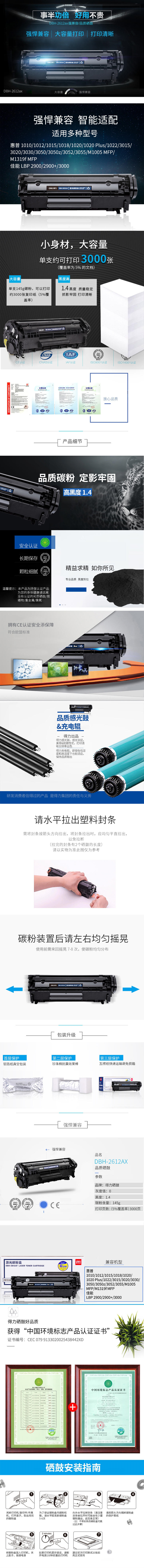 商品标题:得力DBH-2612AX激光碳粉盒(黑色)(单位:个)(适用惠普hp1020plus 3050 M1005 1010 1015 M1319f佳能2900)