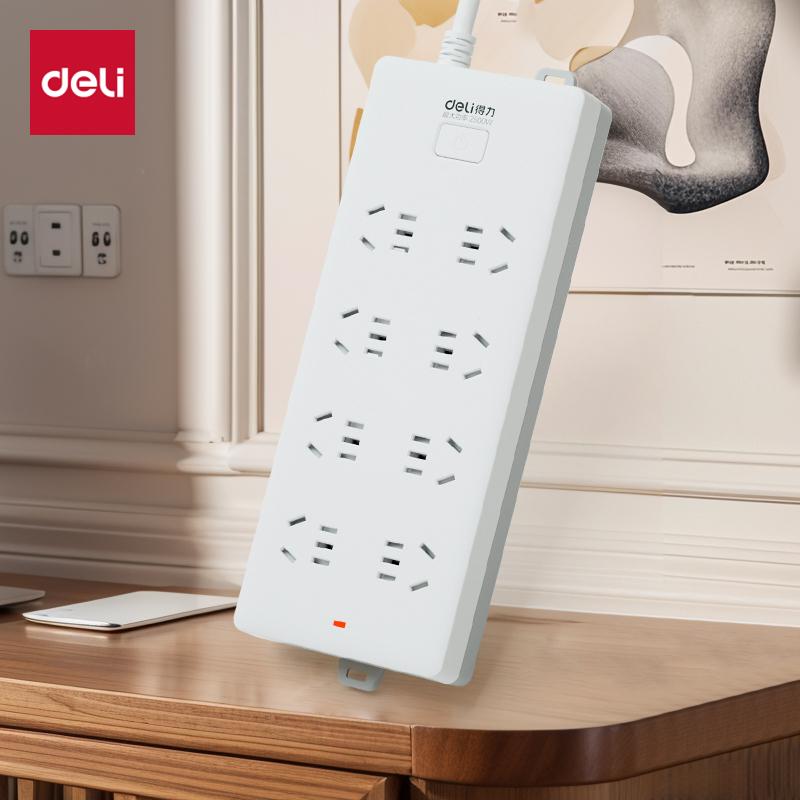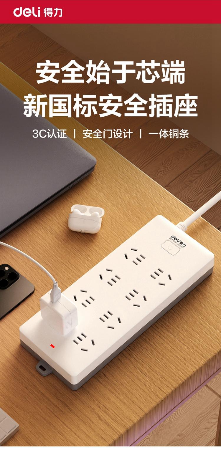 得力18262插座 8组总控 3米 白色(只)1只/个(单位:个)