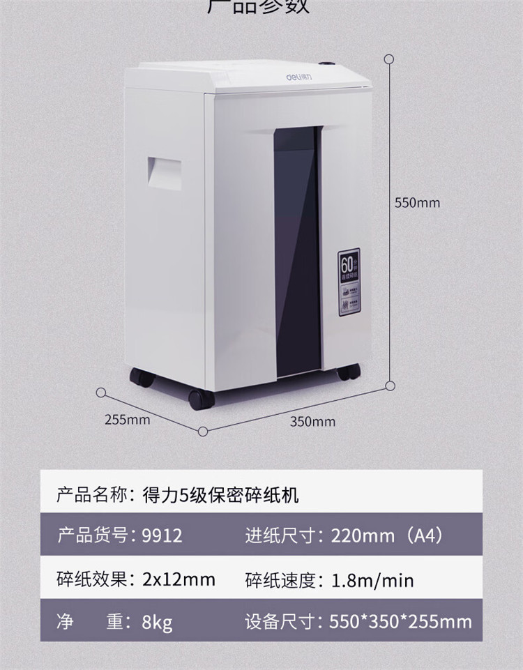 商品标题:得力9912碎纸机(浅灰)(台)